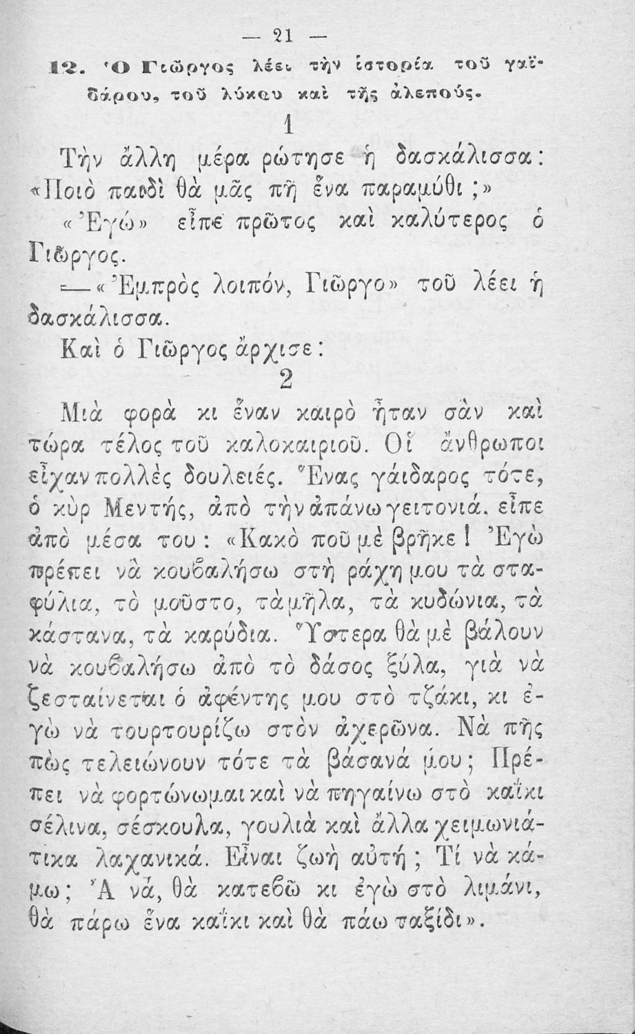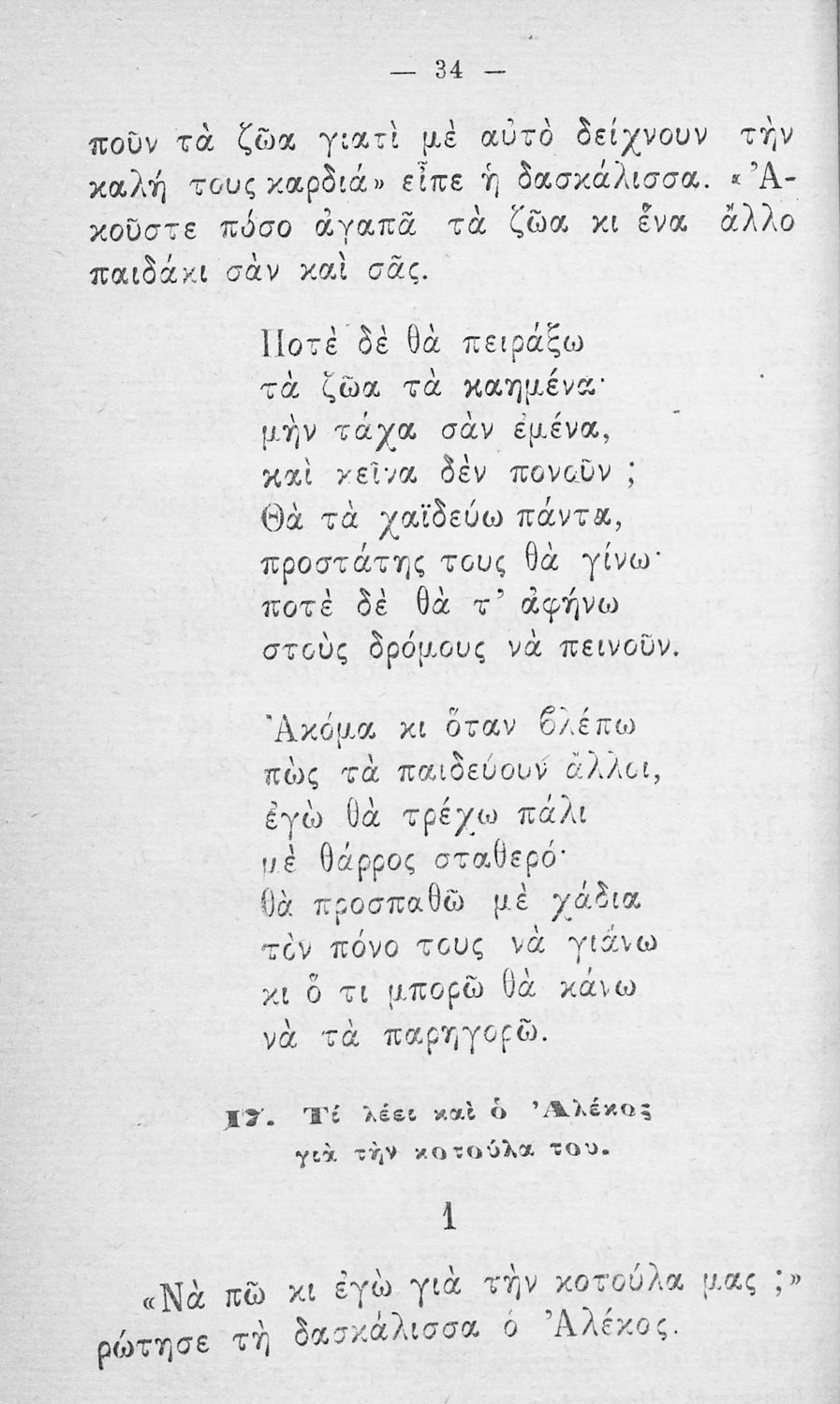 Αναγνωστικό Α΄ Δημοτικού που περιέχει μικρές αφηγηματικές ιστορίες και ποιήματα του Πάλλη και του Πολέμη με ηθικοπλαστικό περιεχόμενο.