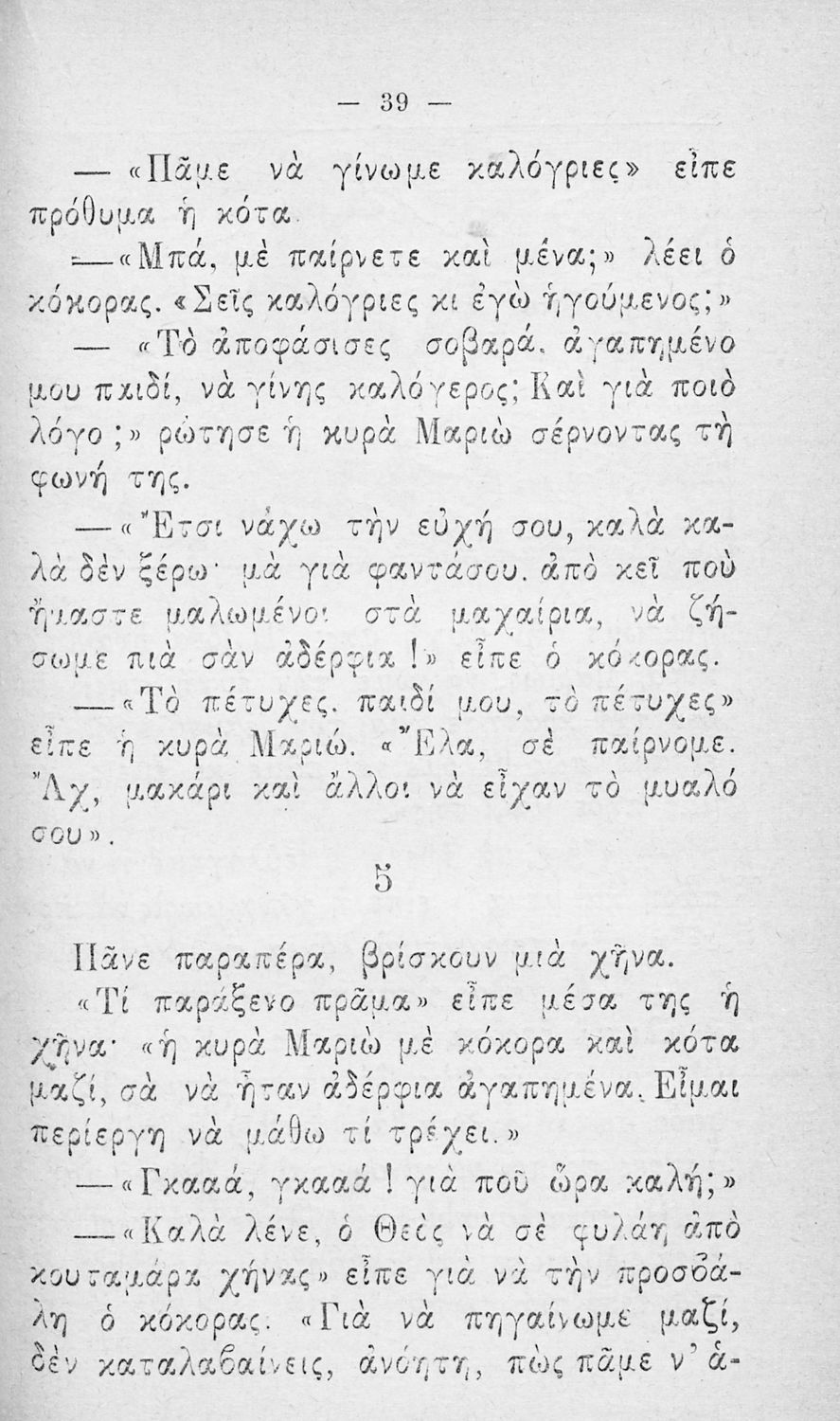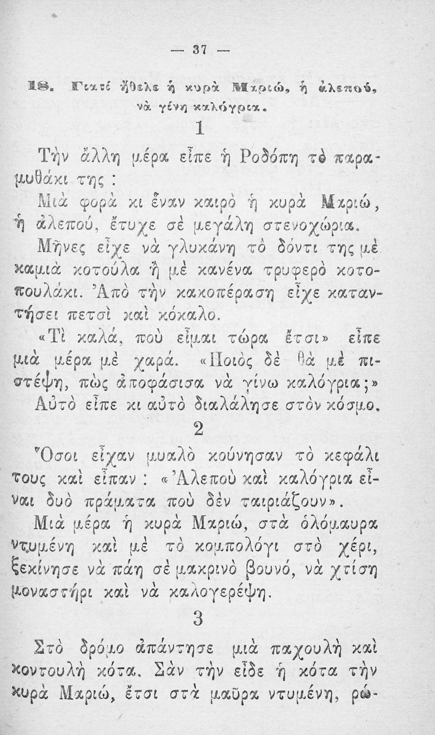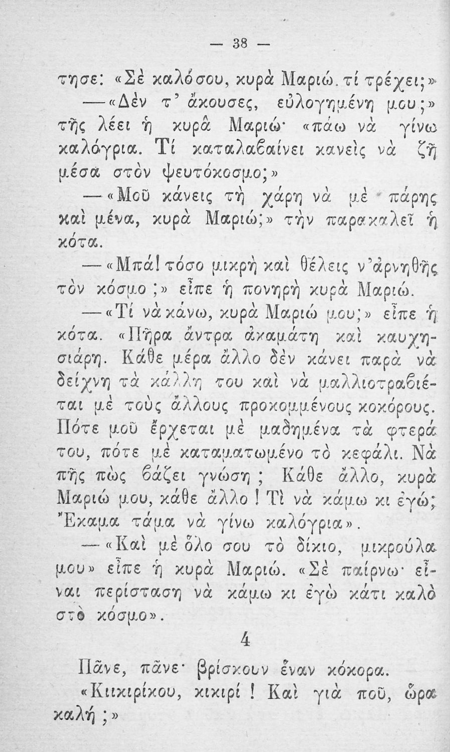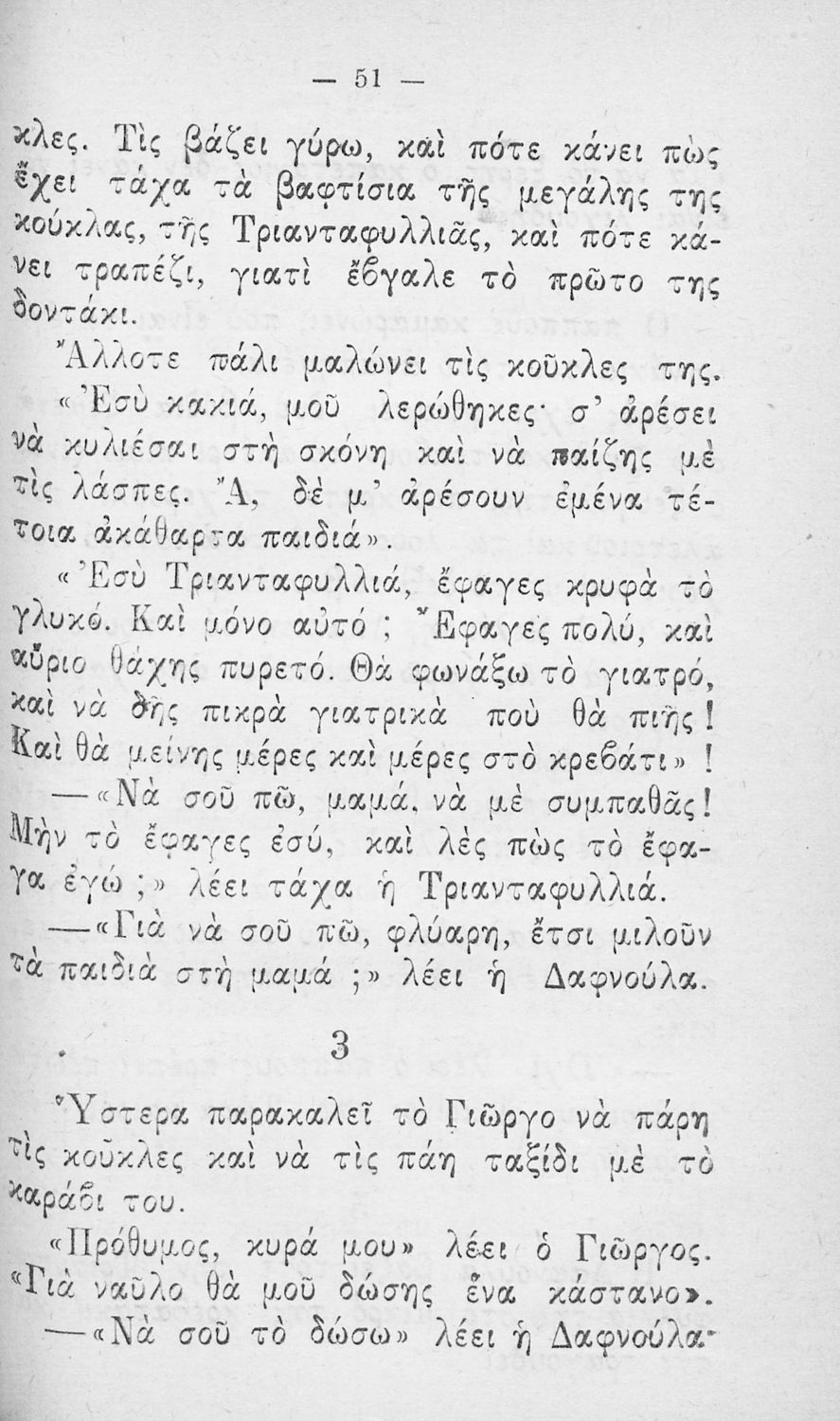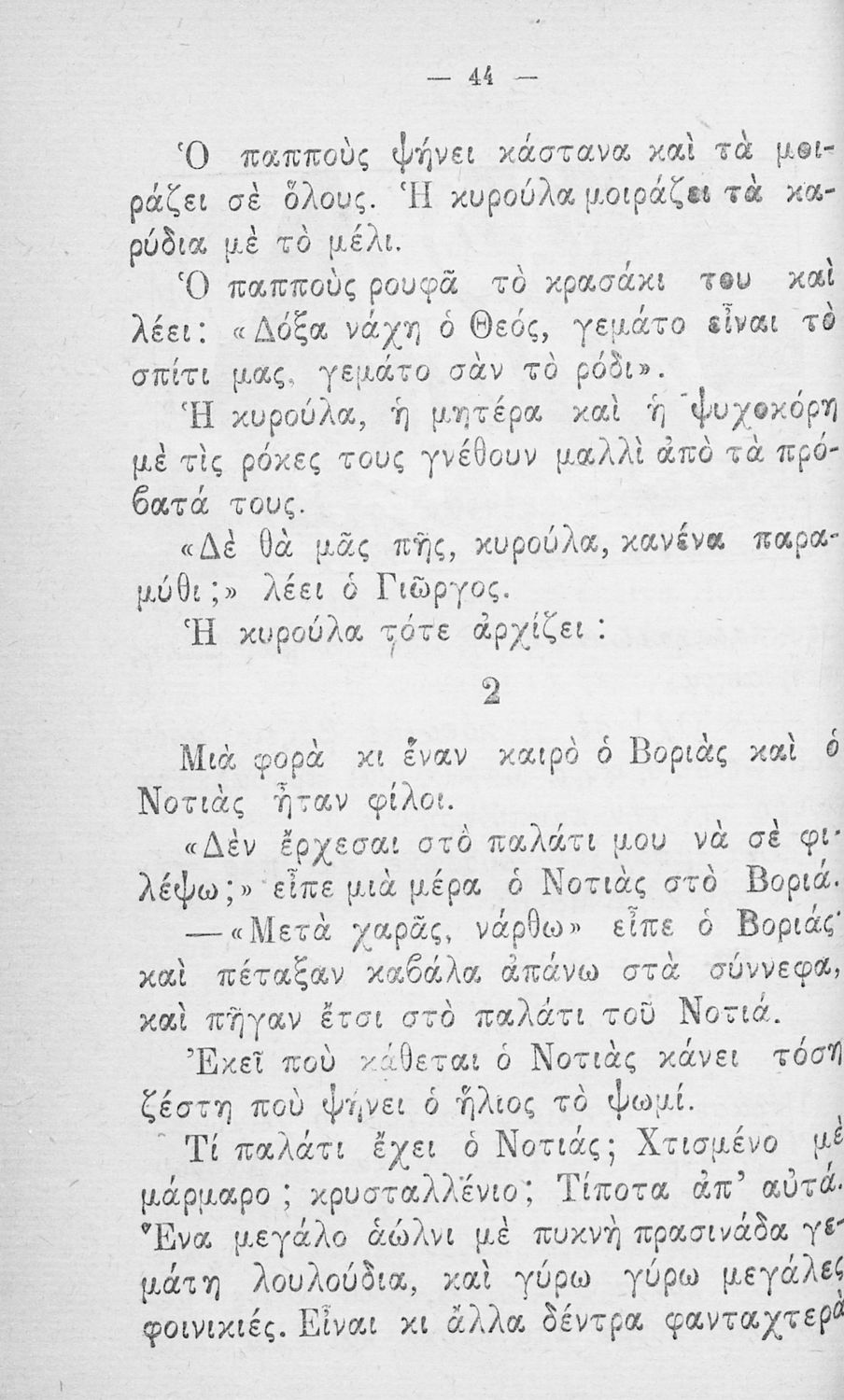 Αναγνωστικό [Α΄ Δημοτικού] που περιλαμβάνει ποιηματάκια και ιστοριούλες και αντλεί τη θεματολογία του από καθημερινά περιστατικά, την ελληνική ύπαιθρο και την ελληνική οικογένεια.