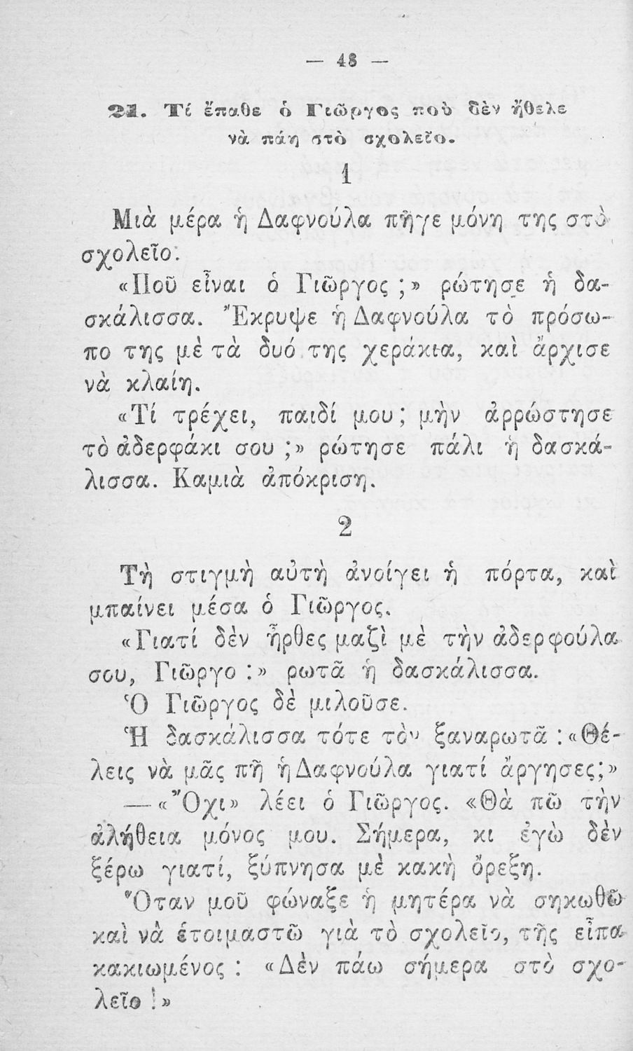 Αναγνωστικό Α΄ Δημοτικού που περιέχει μικρές αφηγηματικές ιστορίες και ποιήματα του Πάλλη και του Πολέμη με ηθικοπλαστικό περιεχόμενο.