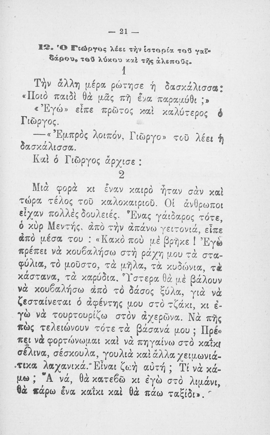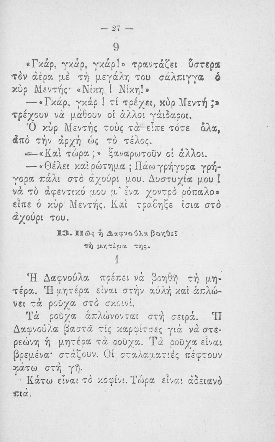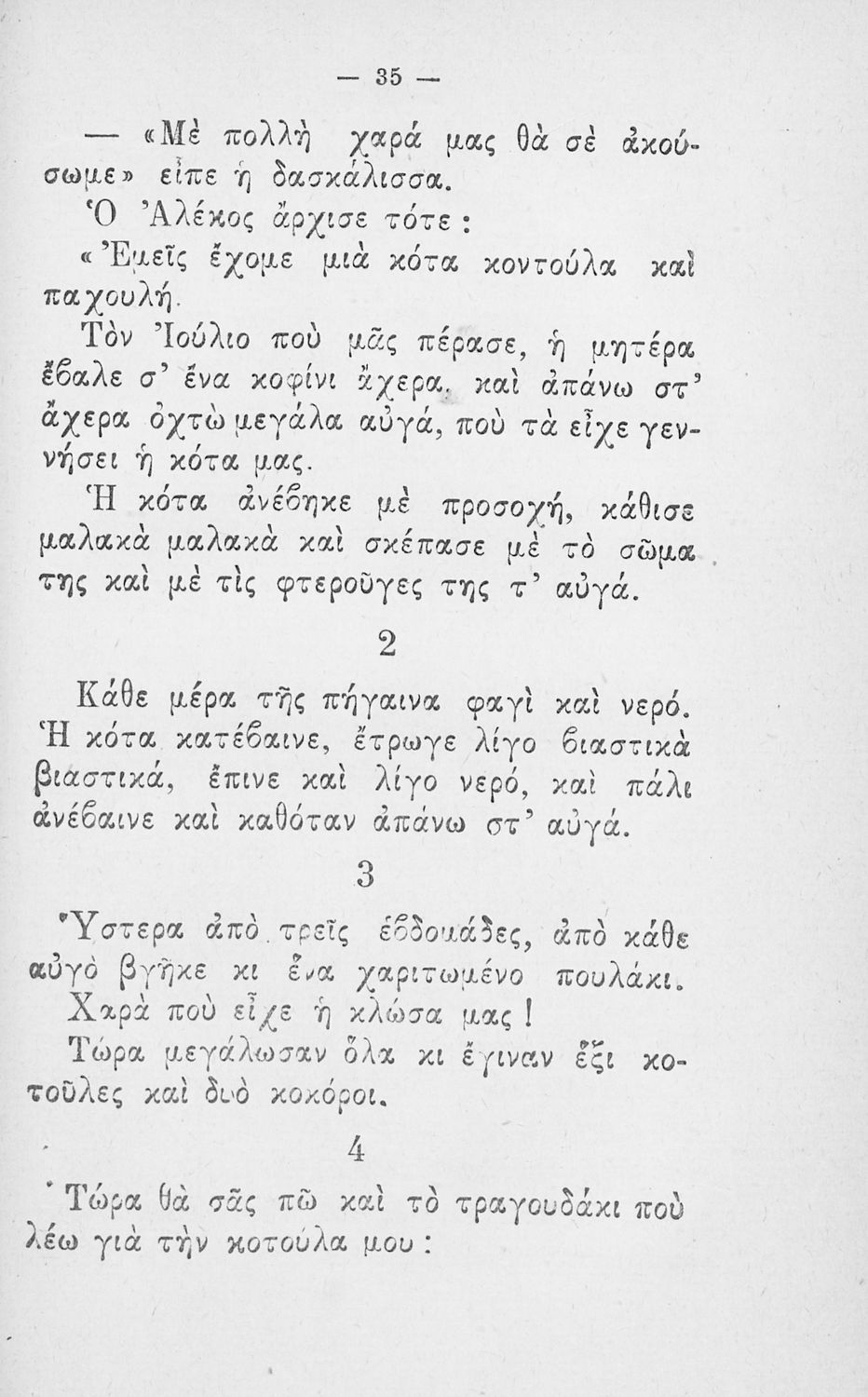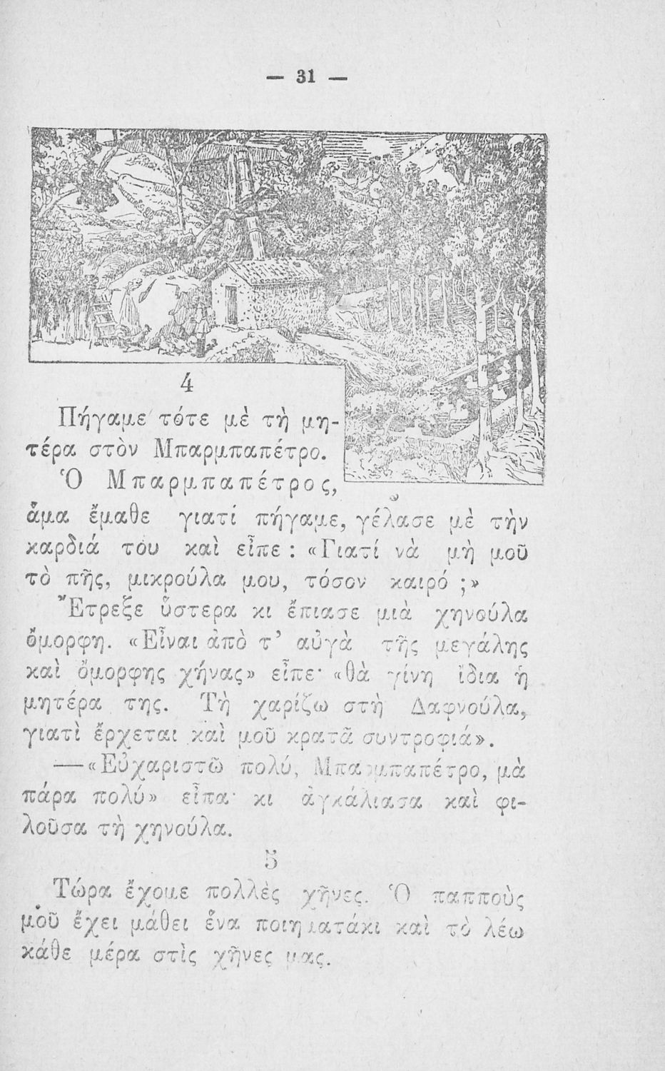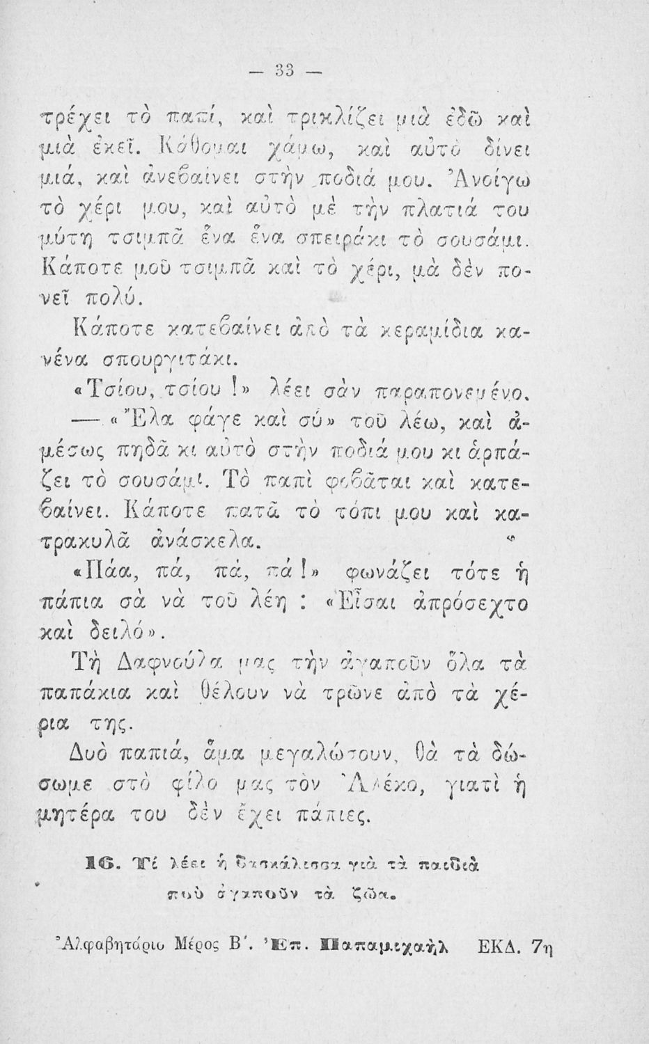 Αναγνωστικό Α΄ Δημοτικού που περιέχει μικρές αφηγηματικές ιστορίες και ποιήματα του Πάλλη και του Πολέμη με ηθικοπλαστικό περιεχόμενο.