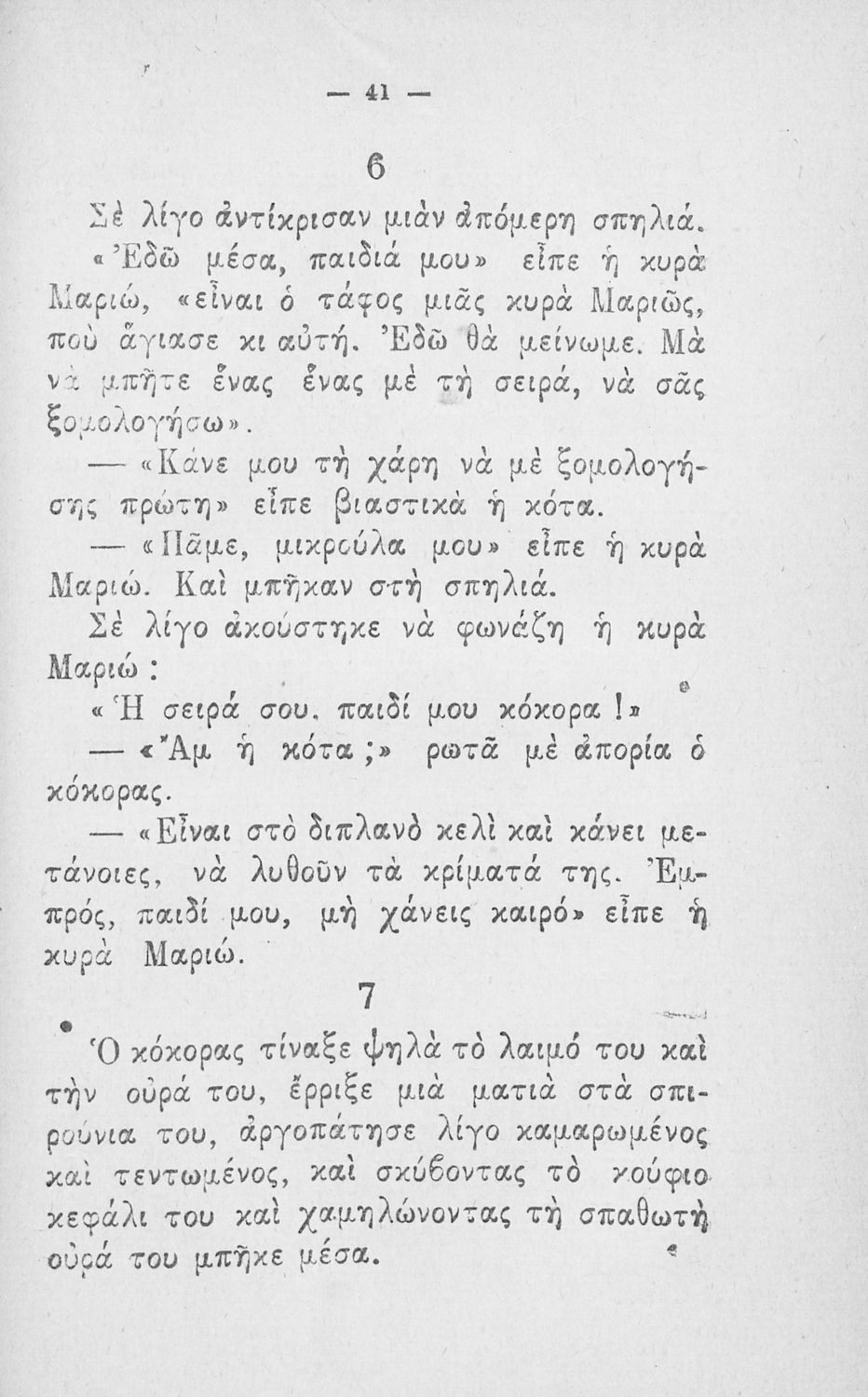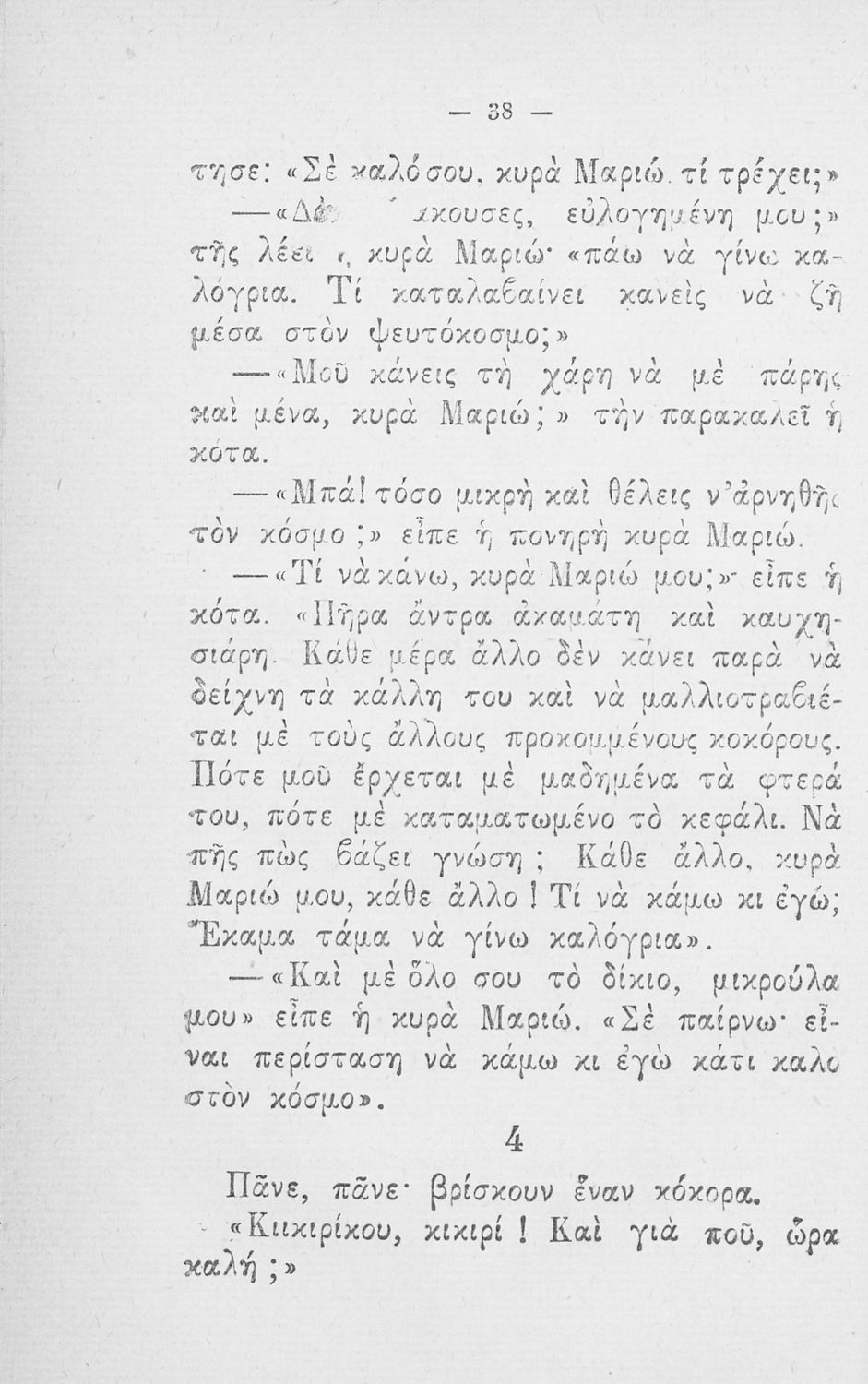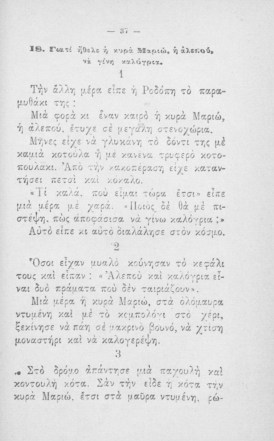 Αναγνωστικό [Α΄ Δημοτικού] που περιλαμβάνει ποιηματάκια και ιστοριούλες και αντλεί τη θεματολογία του από καθημερινά περιστατικά, την ελληνική ύπαιθρο και την ελληνική οικογένεια.