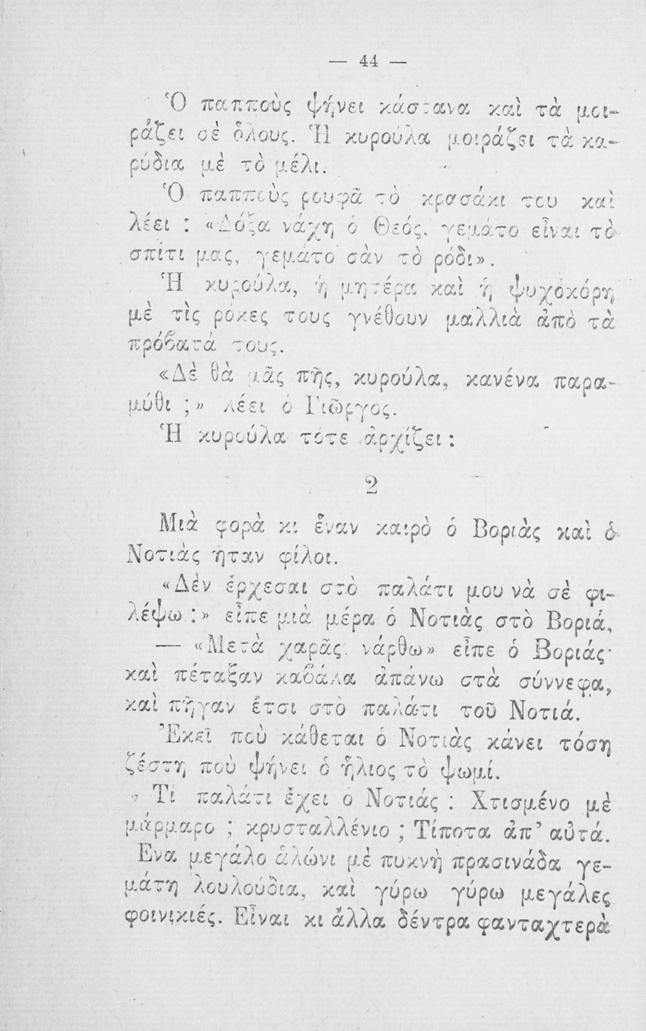 Αναγνωστικό Α΄ Δημοτικού που περιέχει μικρές αφηγηματικές ιστορίες και ποιήματα του Πάλλη και του Πολέμη με ηθικοπλαστικό περιεχόμενο.