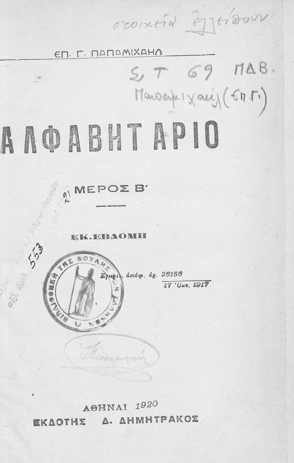 Αλφαβητάριο Μέρος Β΄   [1919, 2η Έκδοση]