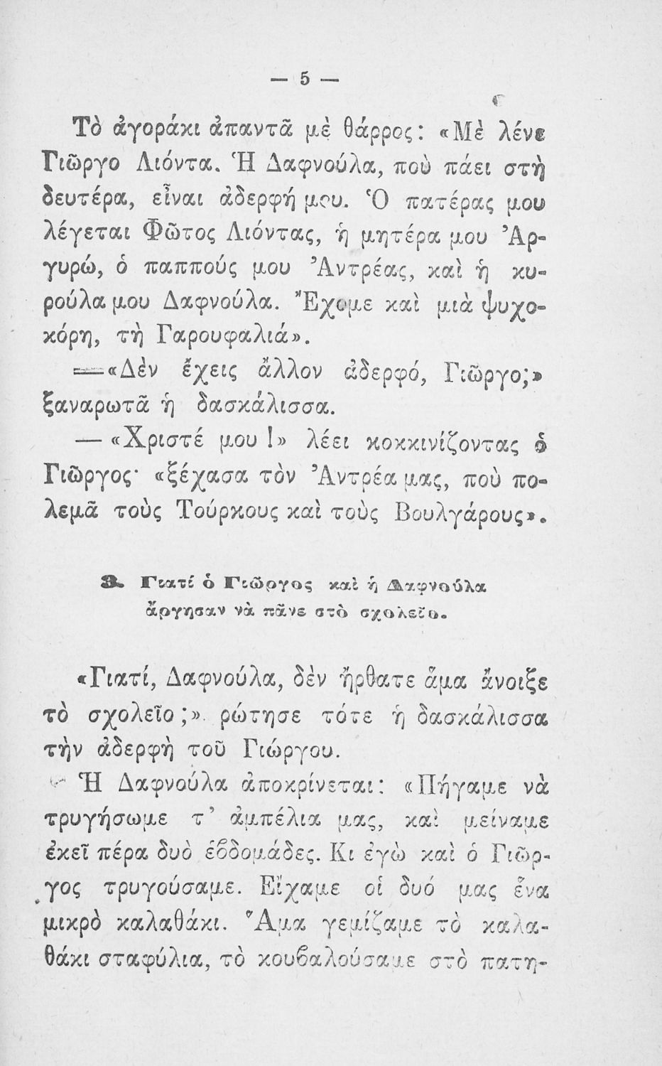 Αναγνωστικό Α΄ Δημοτικού που περιστρέφεται γύρω από την ιστορία της Δαφνούλας και του Γιώργου και την καθημερινή τους ζωή.