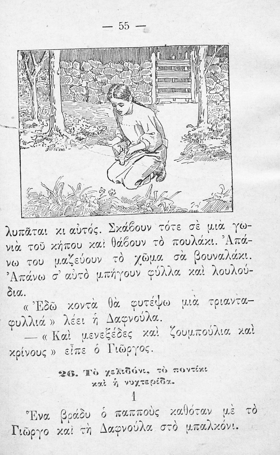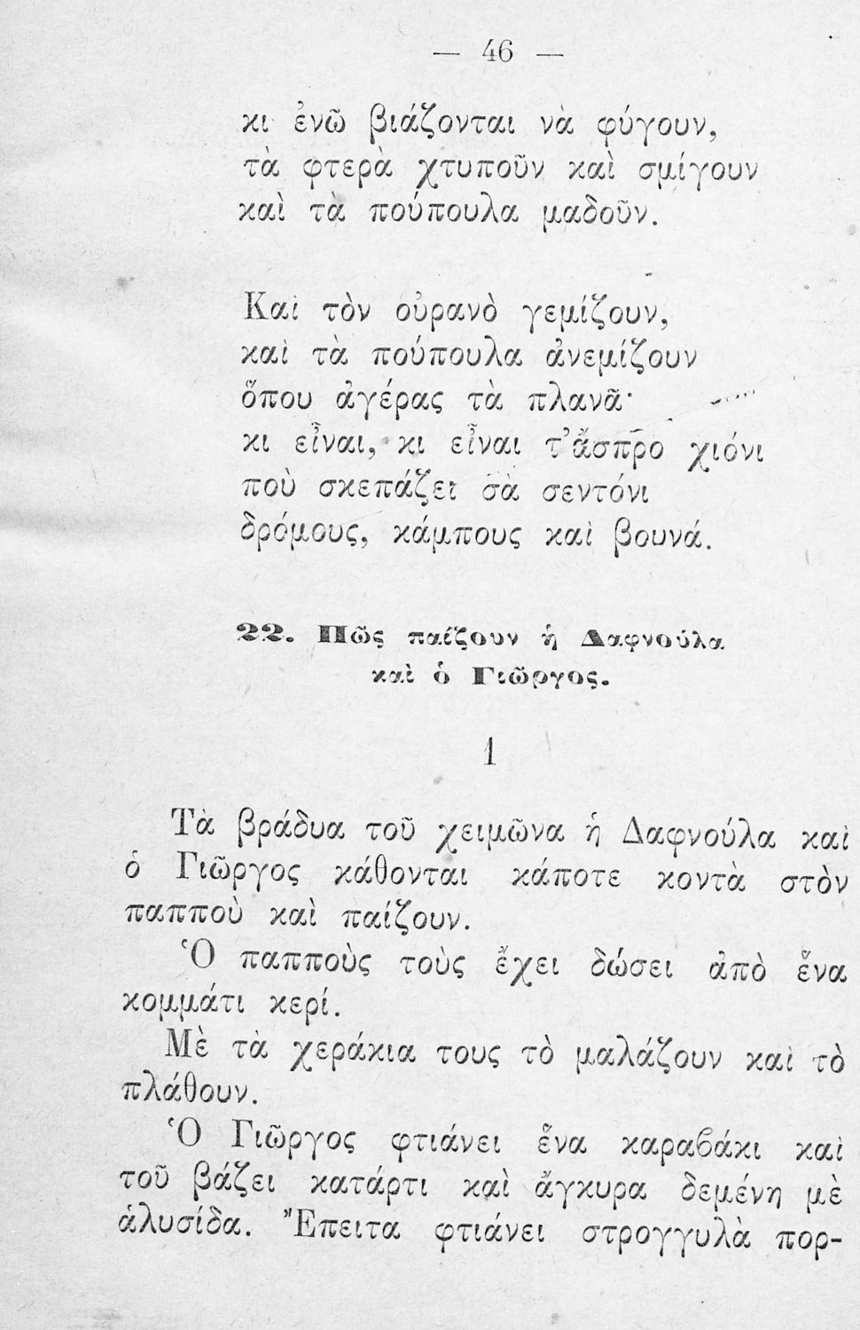 Αναγνωστικό Α΄ Δημοτικού που περιέχει γράμματα, συλλαβές και μικρά κείμενα εμπνευσμένα από την καθημερινή ζωή των παιδιών και την ελληνική φύση.