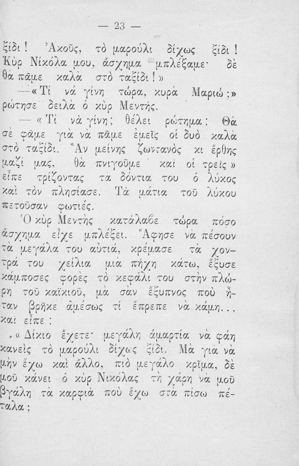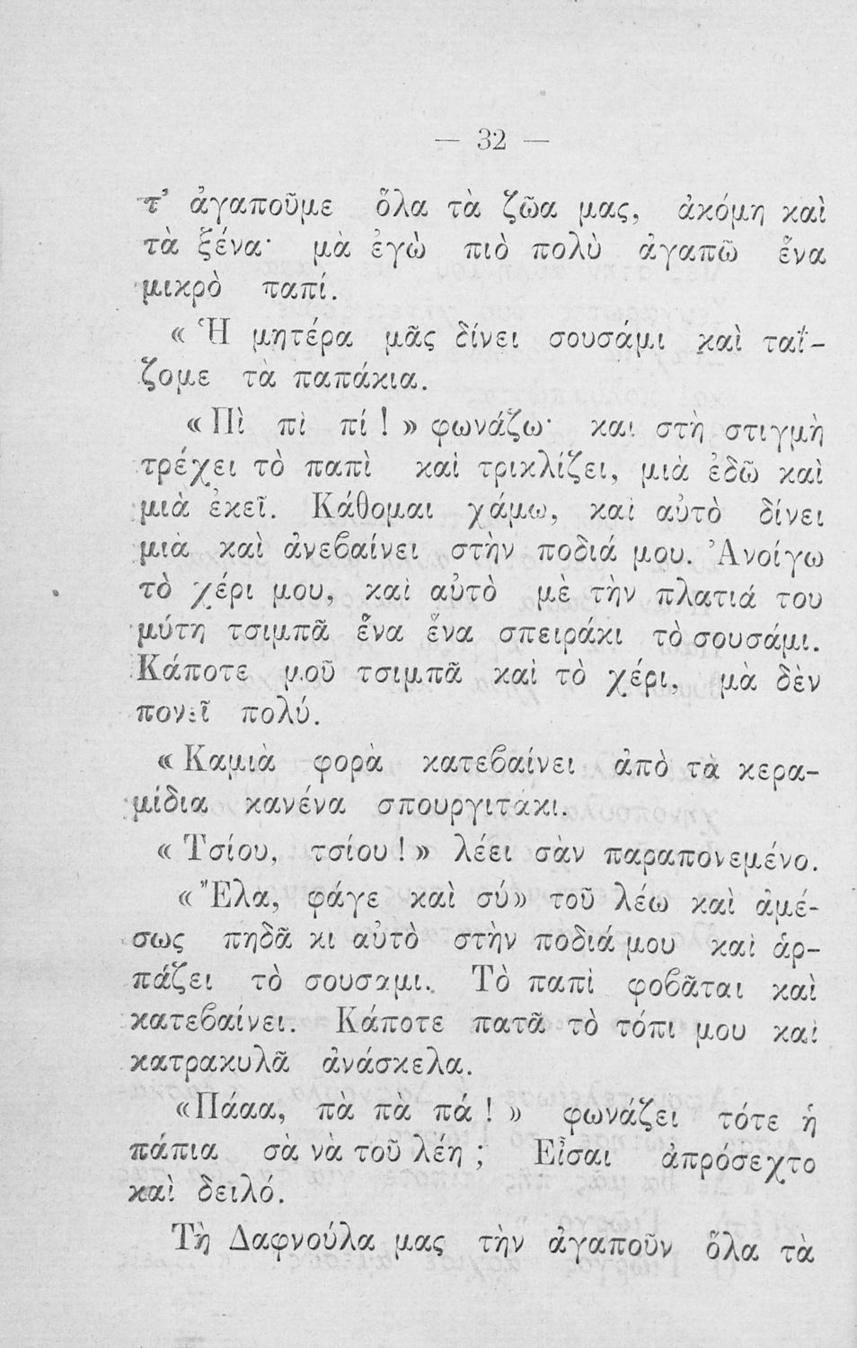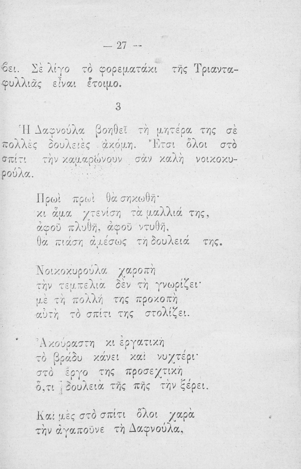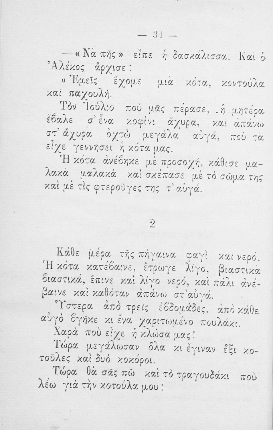 Αναγνωστικό Α΄ Δημοτικού που περιέχει γράμματα, συλλαβές, λέξεις, προτάσεις και κείμενα εμπνευσμένα από την οικογενειακή και κοινωνική ζωή του τόπου. Φέρει το σύμβολο της δικτατορίας.