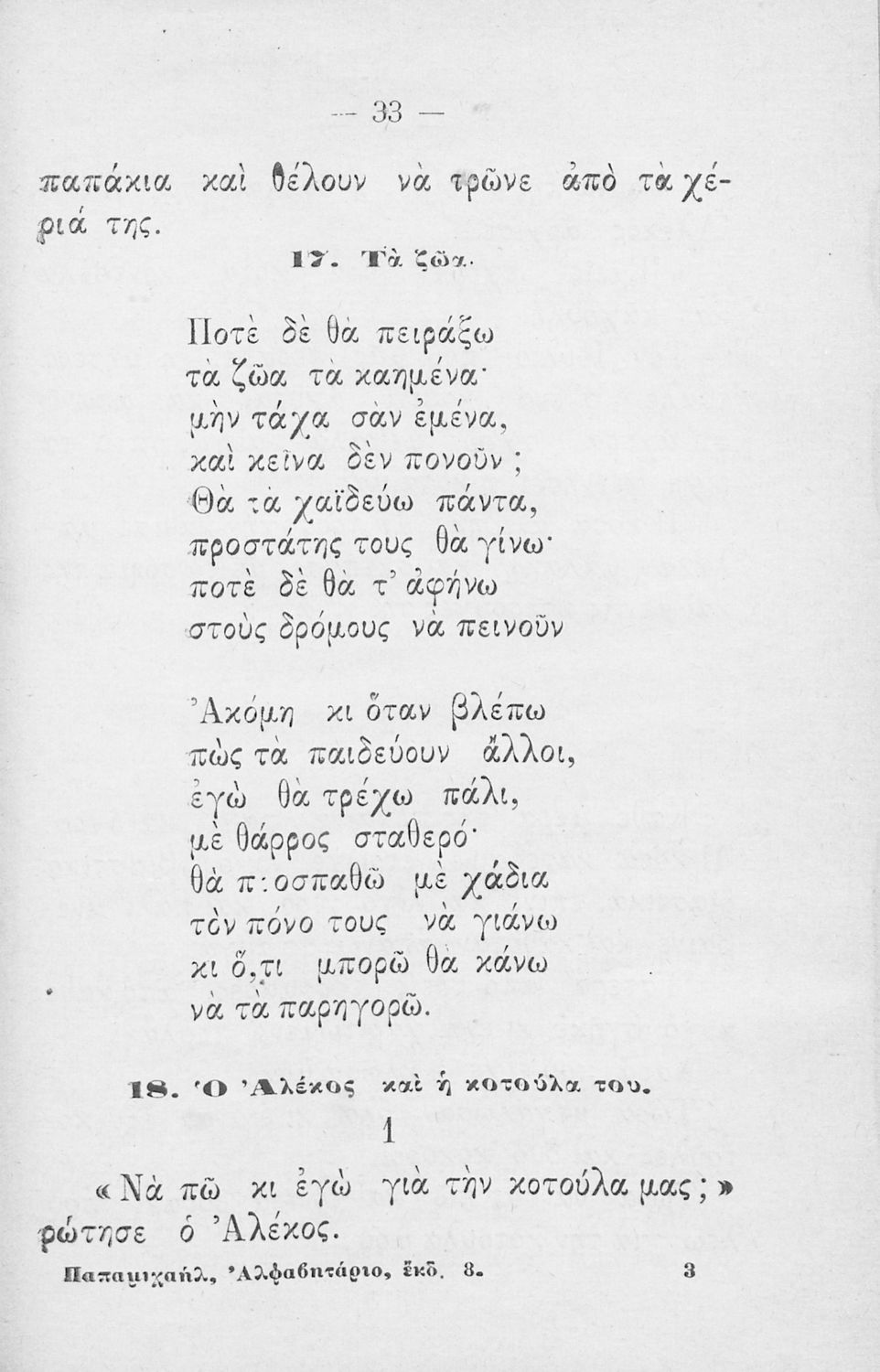 Παιδαγωγικό βοήθημα για τη Γλώσσα. Περιλαμβάνει οδηγίες του συγγραφέα προς τους δασκάλους για την διδασκαλία του αλφαβηταρίου.