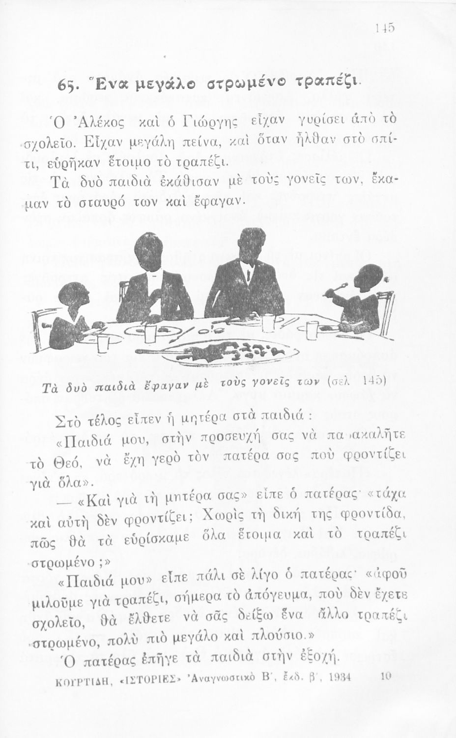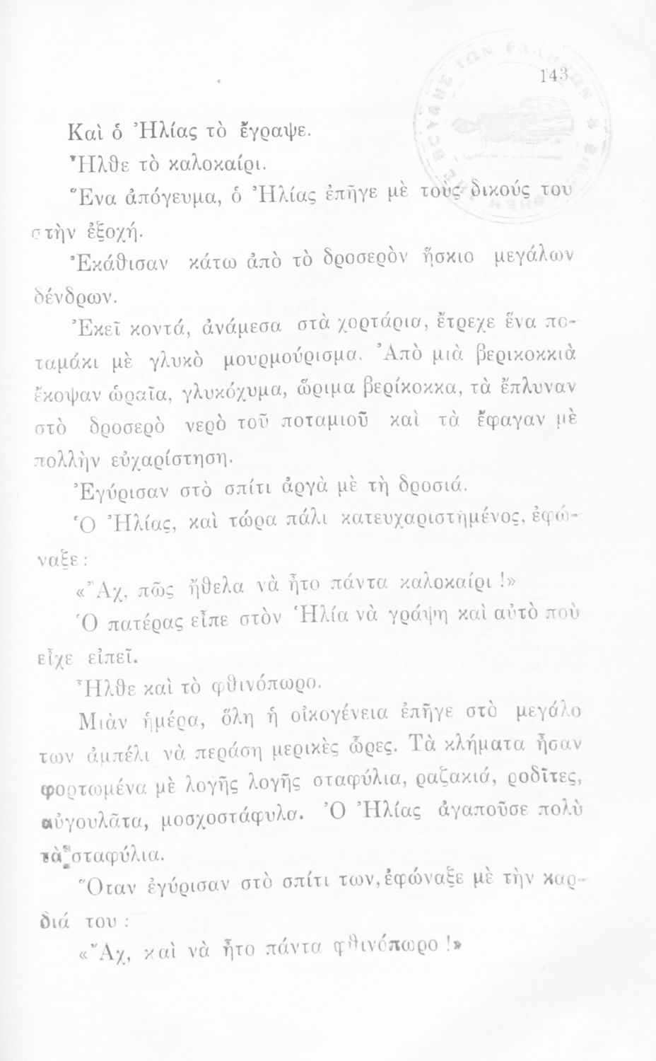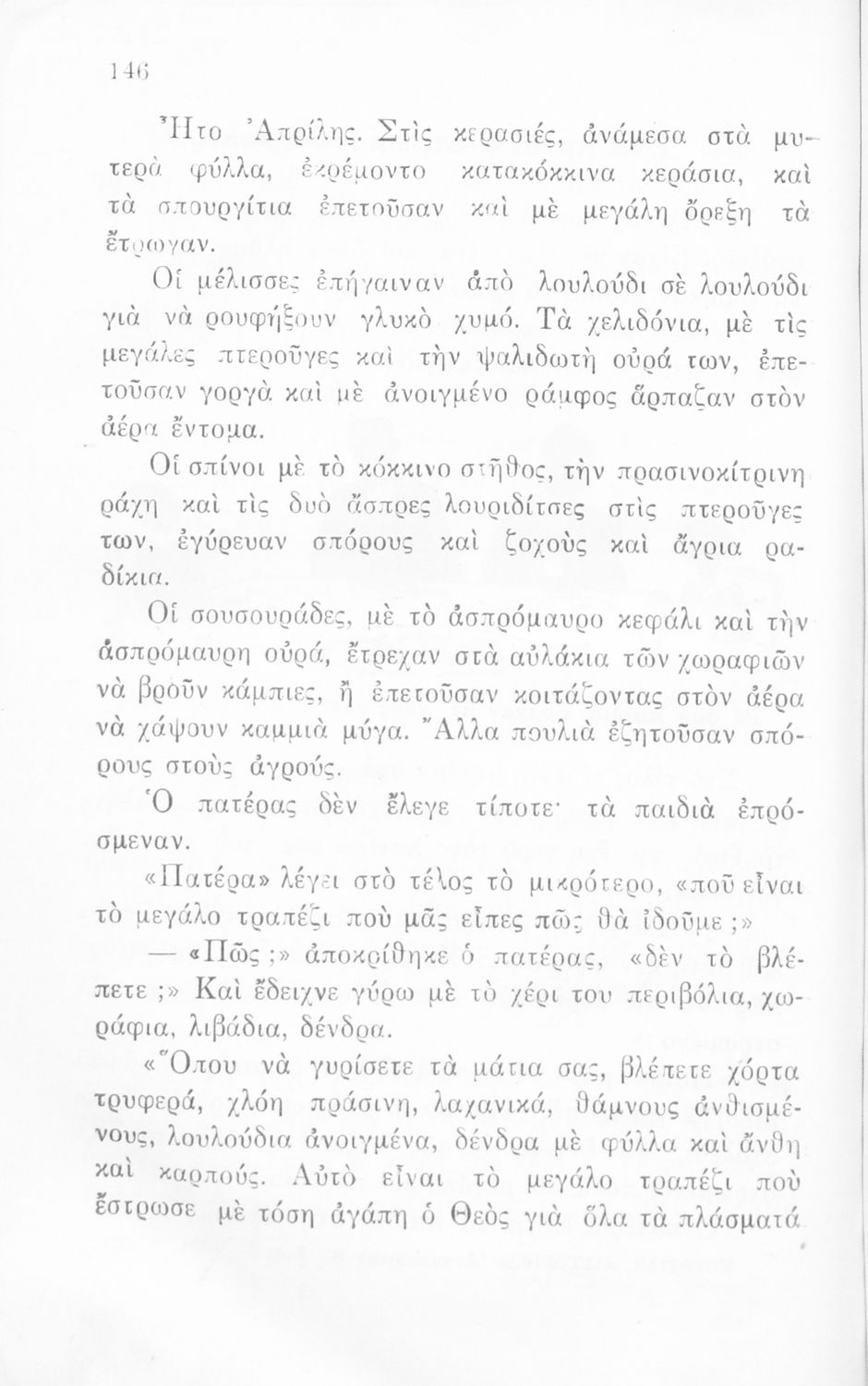 Αναγνωστικό Β' Δημοτικού που περιλαμβάνει μικρά διηγήματα και ποιήματα με περιεχόμενο από την οικογενειακή και κοινωνική ζωή, την ελληνική φύση, την ελληνική ιστορία και μυθολογία και την υγιεινή.