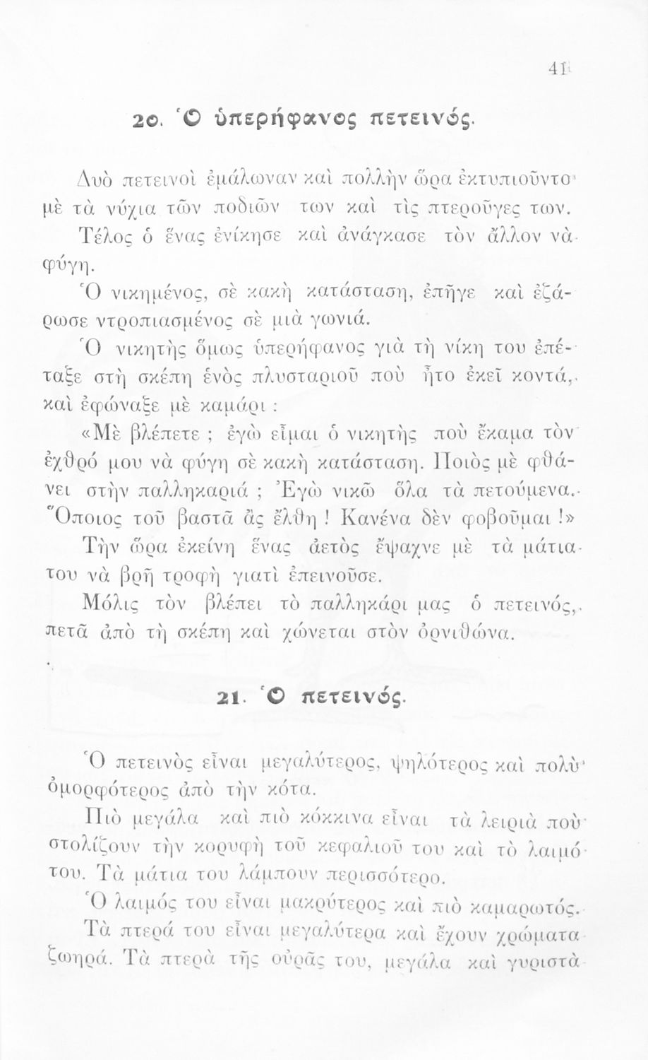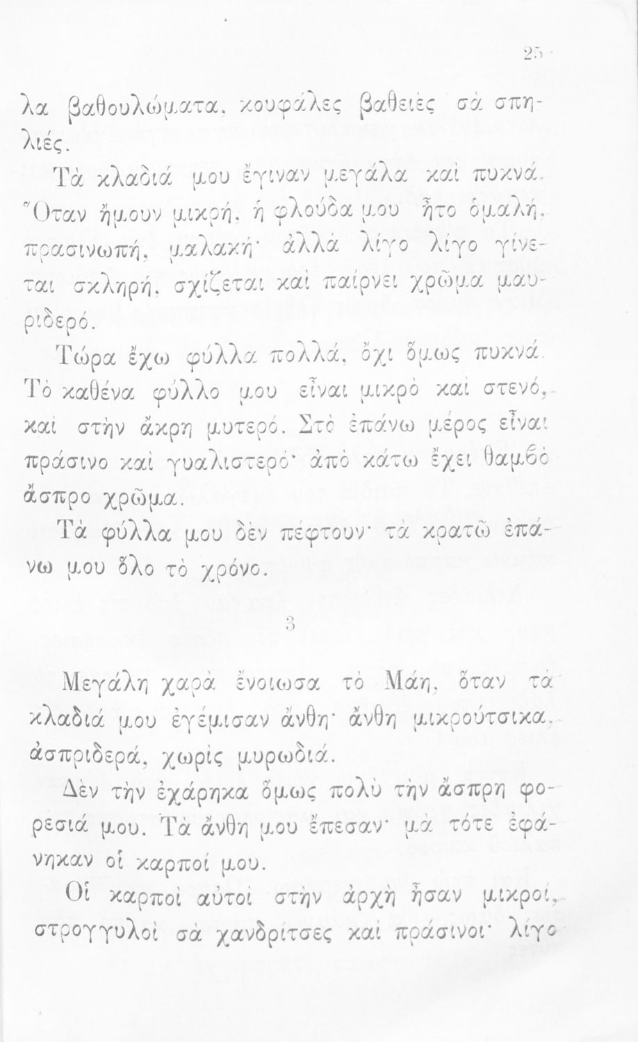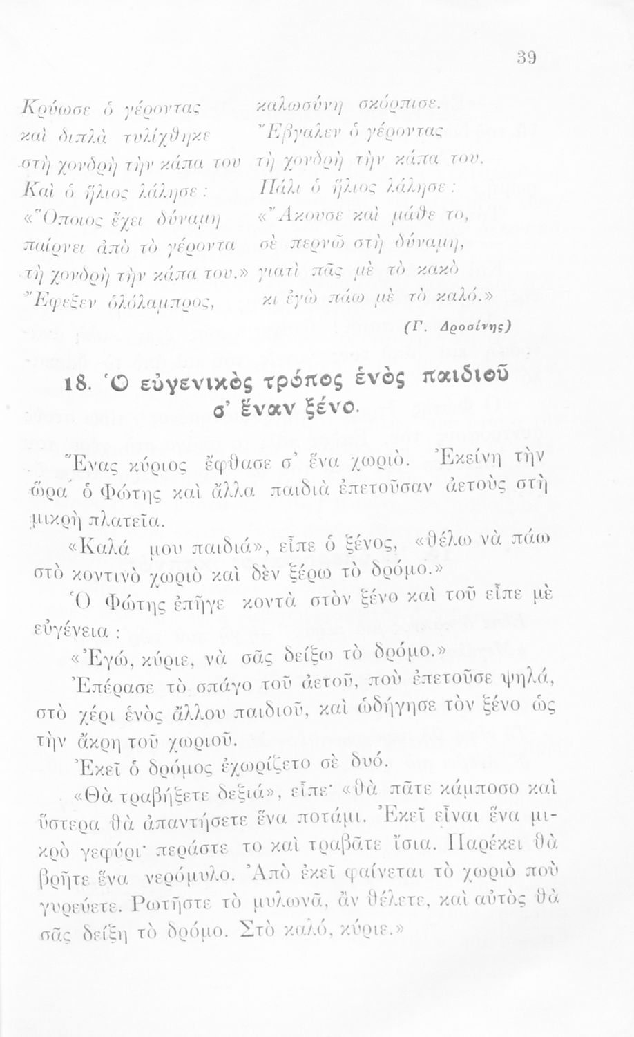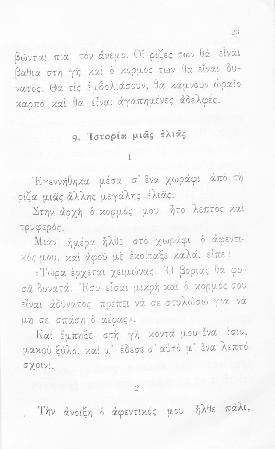 Αναγνωστικό Β' Δημοτικού που περιλαμβάνει μικρά διηγήματα και ποιήματα με περιεχόμενο από την οικογενειακή και κοινωνική ζωή, την ελληνική φύση, την ελληνική ιστορία και μυθολογία και την υγιεινή.