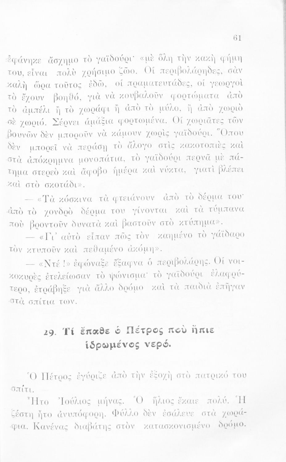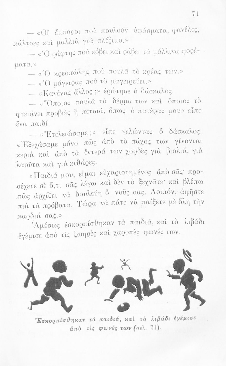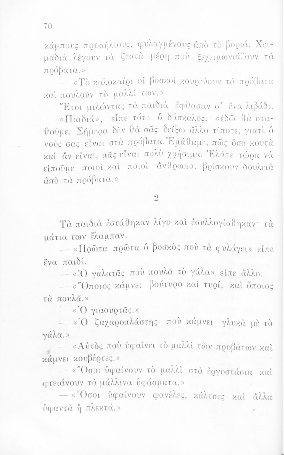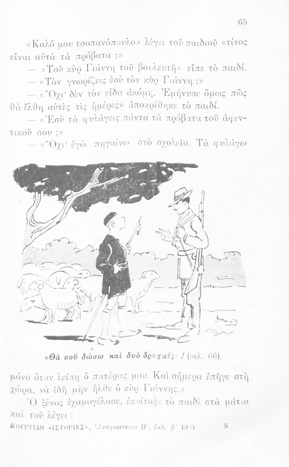 Αναγνωστικό Β' Δημοτικού που περιλαμβάνει μικρά διηγήματα και ποιήματα με περιεχόμενο από την οικογενειακή και κοινωνική ζωή, την ελληνική φύση, την ελληνική ιστορία και μυθολογία και την υγιεινή.