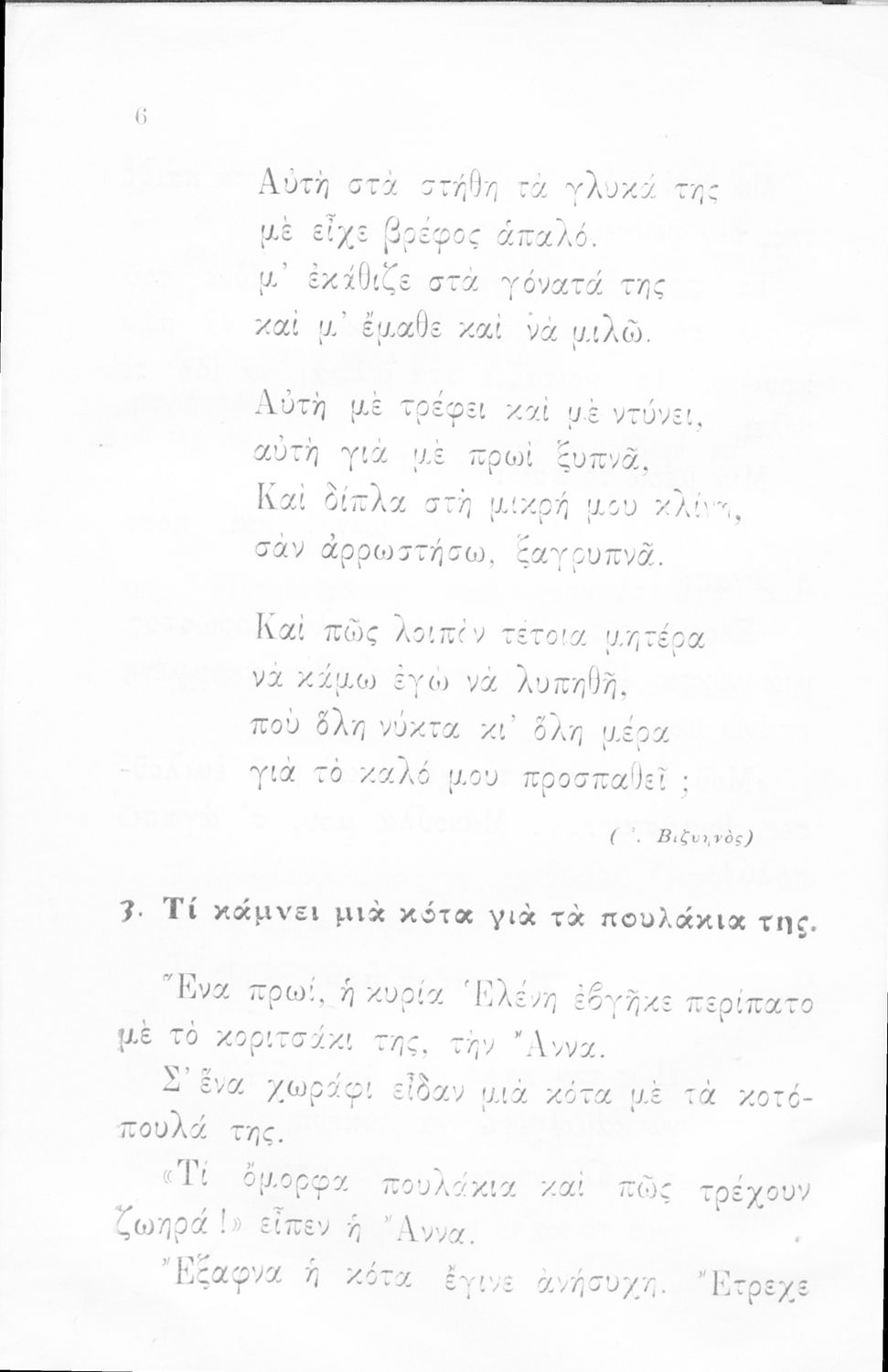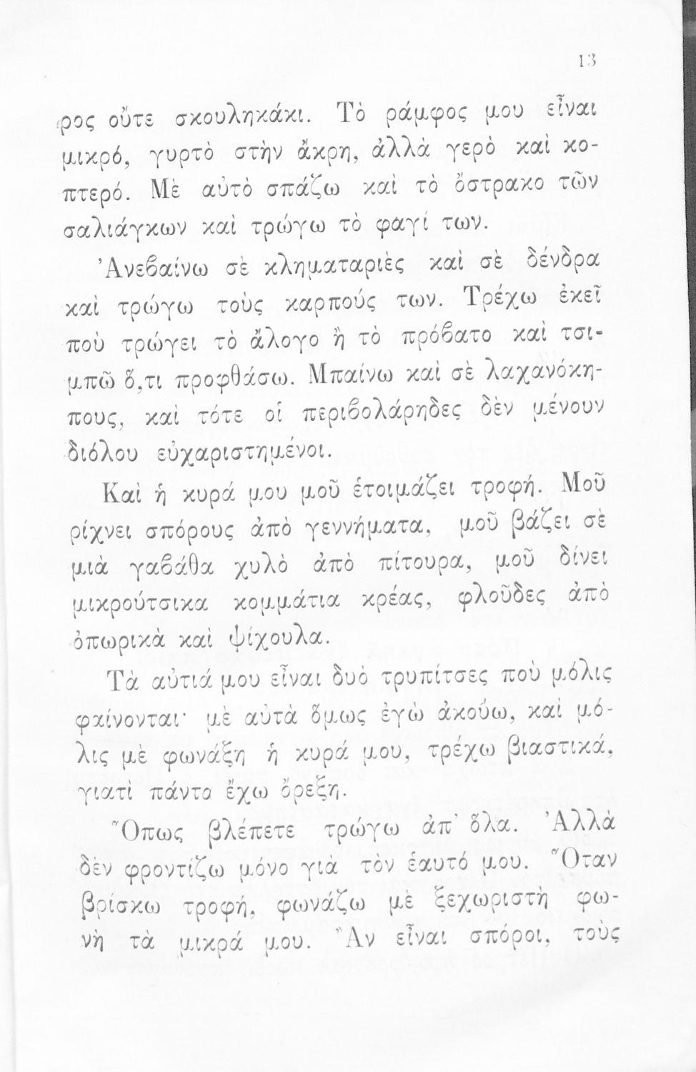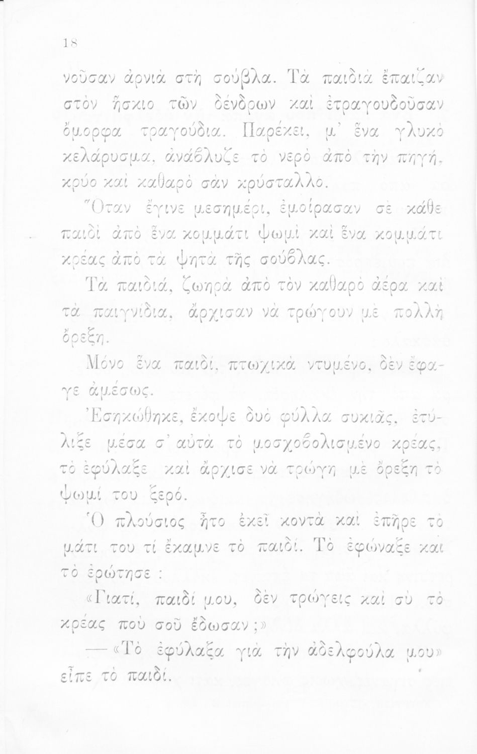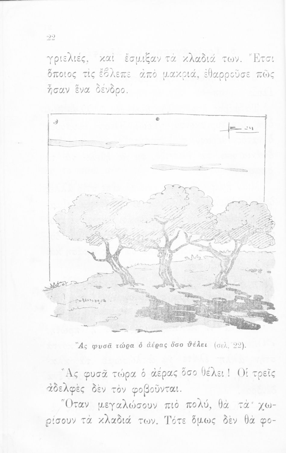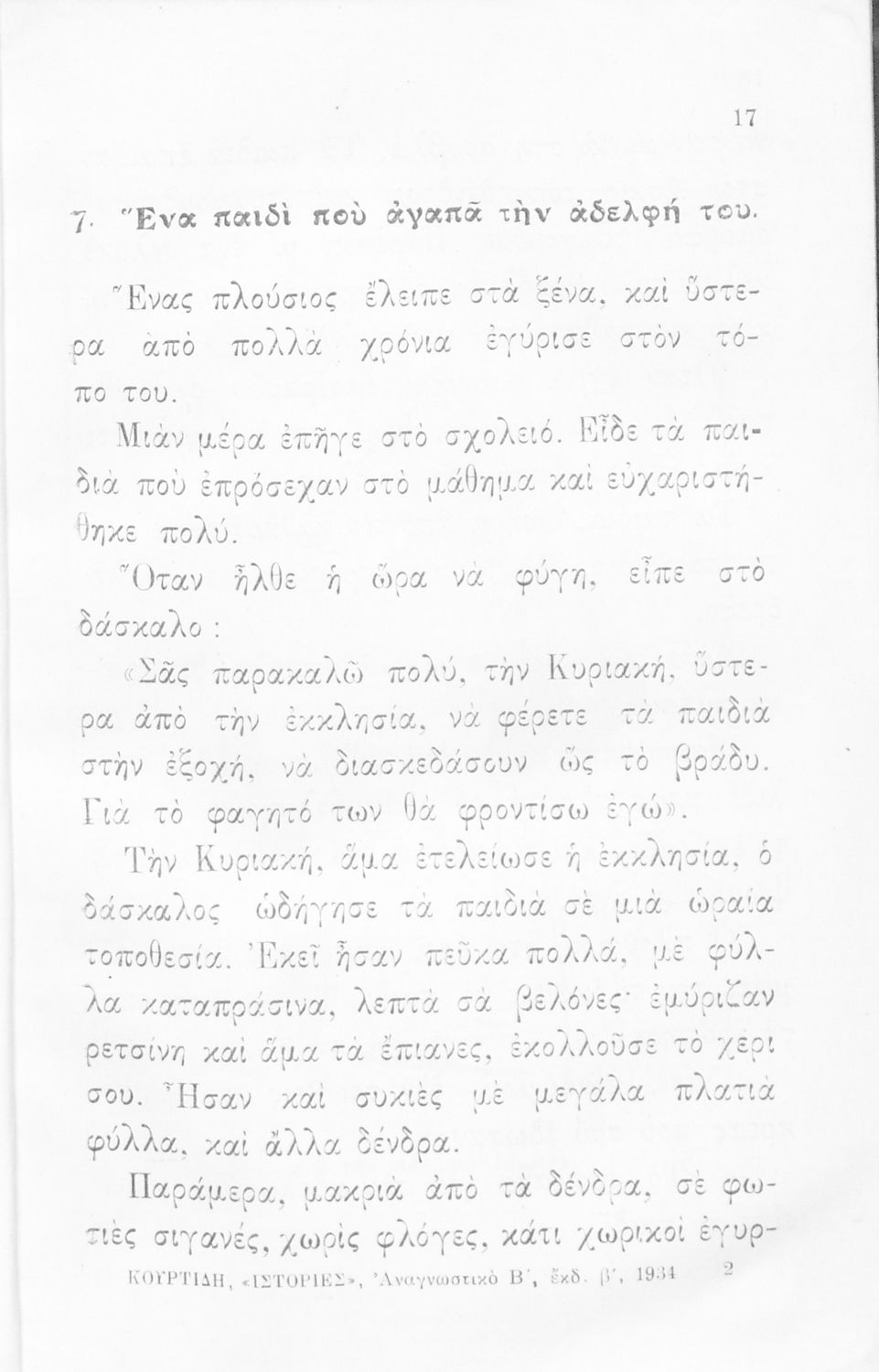 Αναγνωστικό Β' Δημοτικού που περιλαμβάνει μικρά διηγήματα και ποιήματα με περιεχόμενο από την οικογενειακή και κοινωνική ζωή, την ελληνική φύση, την ελληνική ιστορία και μυθολογία και την υγιεινή.
