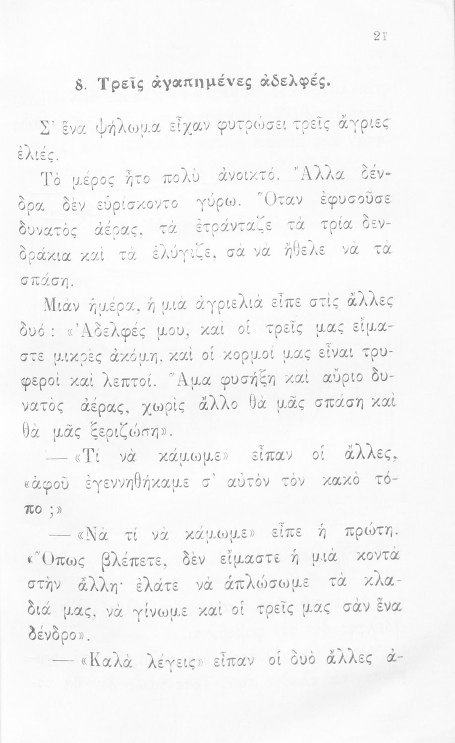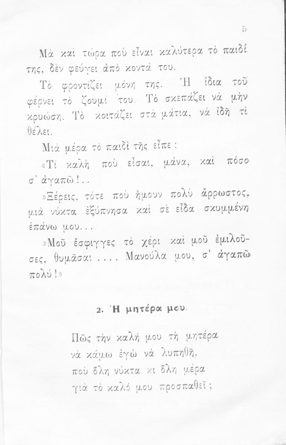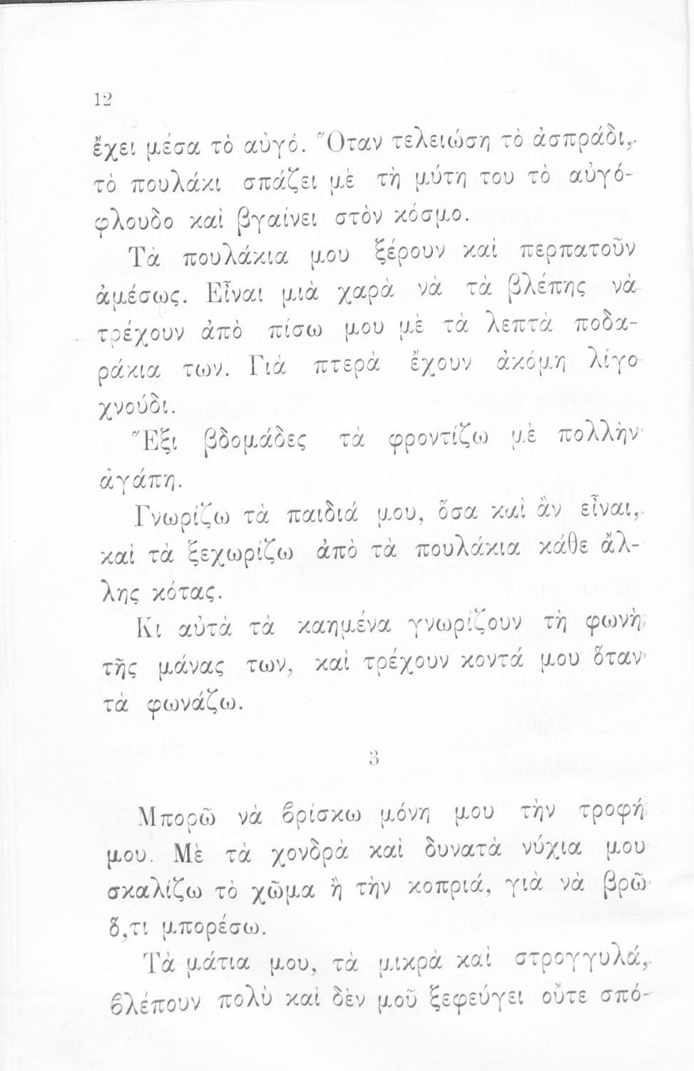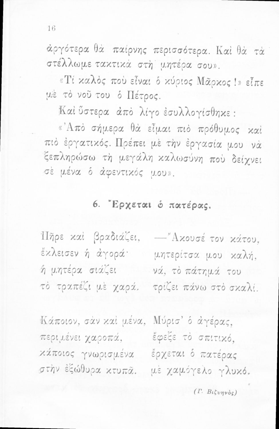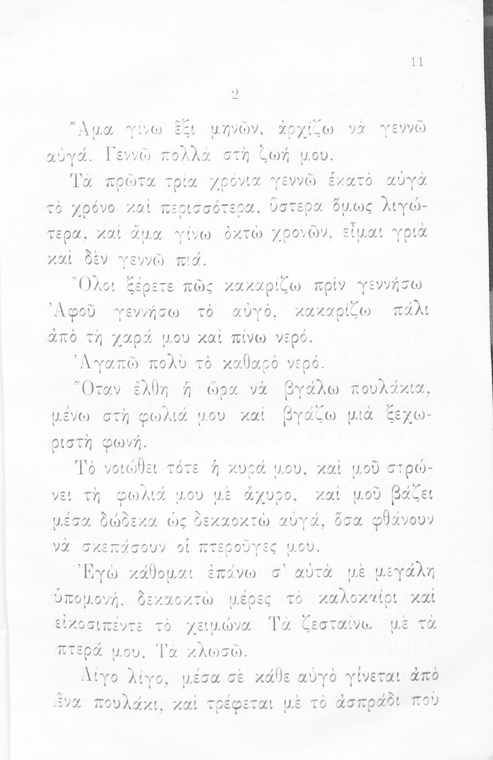 Αναγνωστικό Β' Δημοτικού που περιλαμβάνει μικρά διηγήματα και ποιήματα με περιεχόμενο από την οικογενειακή και κοινωνική ζωή, την ελληνική φύση, την ελληνική ιστορία και μυθολογία και την υγιεινή.