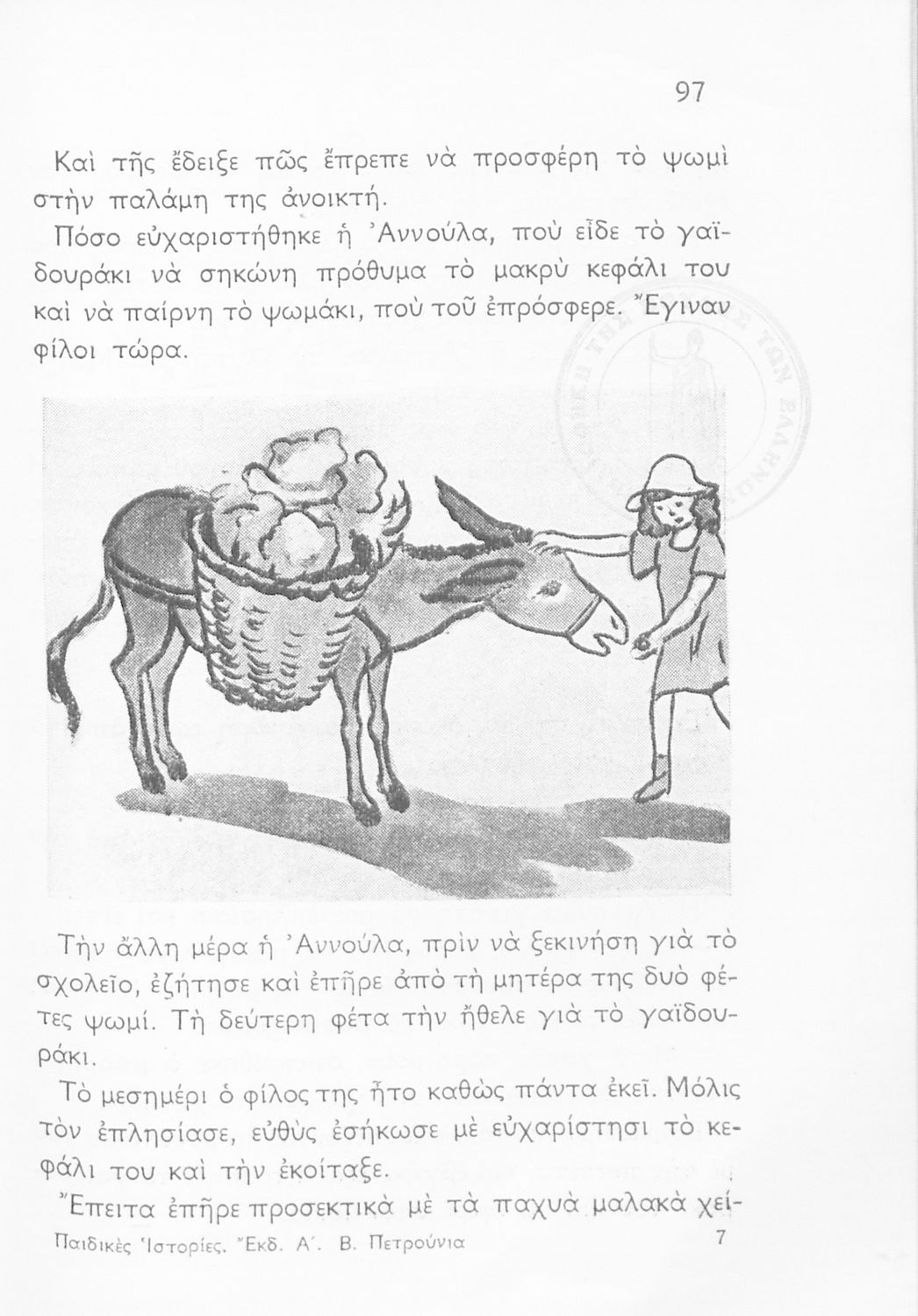 Αναγνωστικό Β' Δημοτικού που περιλαμβάνει μικρά διηγήματα και ποιήματα με περιεχόμενο από την οικογενειακή και κοινωνική ζωή, την ελληνική φύση, την ελληνική ιστορία και μυθολογία και την υγιεινή.