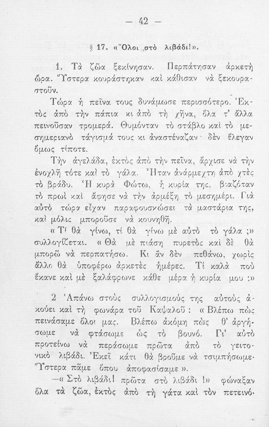 Αναγνωστικό Β' Δημοτικού που περιλαμβάνει μικρά διηγήματα και ποιήματα με περιεχόμενο από την οικογενειακή και κοινωνική ζωή, την ελληνική φύση, την ελληνική ιστορία και μυθολογία και την υγιεινή.