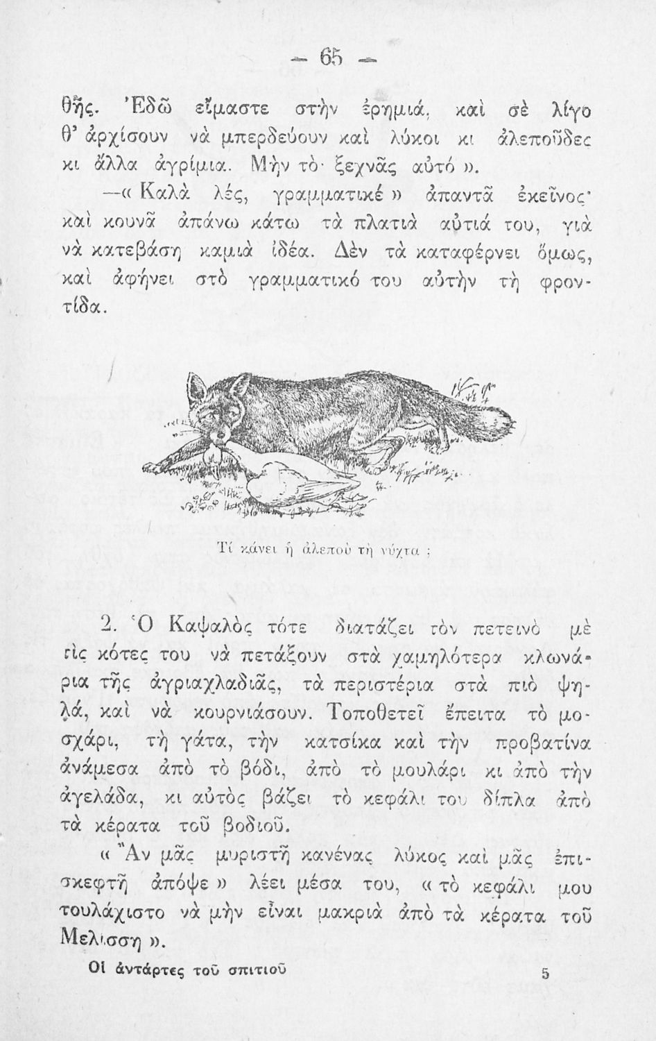 Αναγνωστικό για την Β' Τάξη του Δημοτικού. Περιλαμβάνει μικρά διηγήματα με περιεχόμενο από την οικογενειακή και οικιακή ζωή με βασικούς χαρακτήρες από το ζωικό βασίλειο ώστε μαθητές να αποκτούν ευρύτερες γνώσεις για το περιβάλλον και την καθημερινότητα. Το ύφος και η γλώσσα των κειμένων είναι απλά. Περιέχει εικόνες, οι οποίες εξυπηρετούν και διευκολύνουν στην εκμάθηση της γλώσσας.