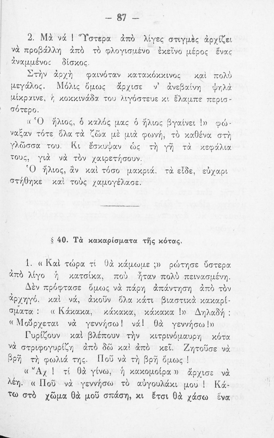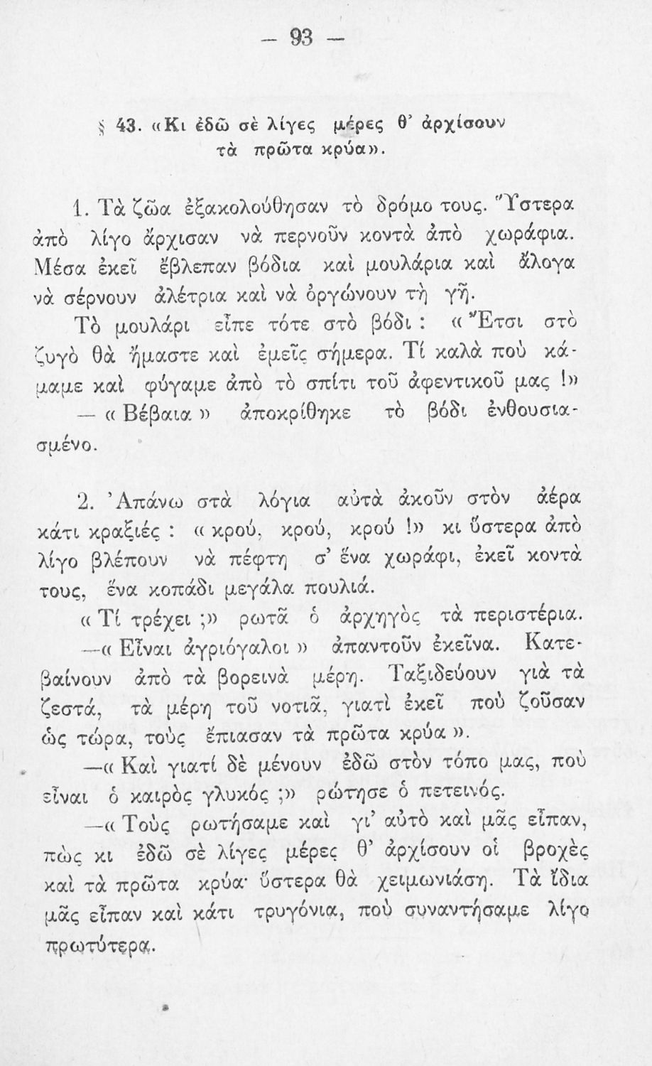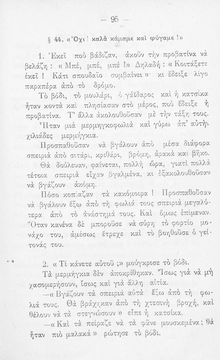 Αναγνωστικό Β' Δημοτικού που περιλαμβάνει μικρά διηγήματα και ποιήματα με περιεχόμενο από την οικογενειακή και κοινωνική ζωή, την ελληνική φύση, την ελληνική ιστορία και μυθολογία και την υγιεινή.