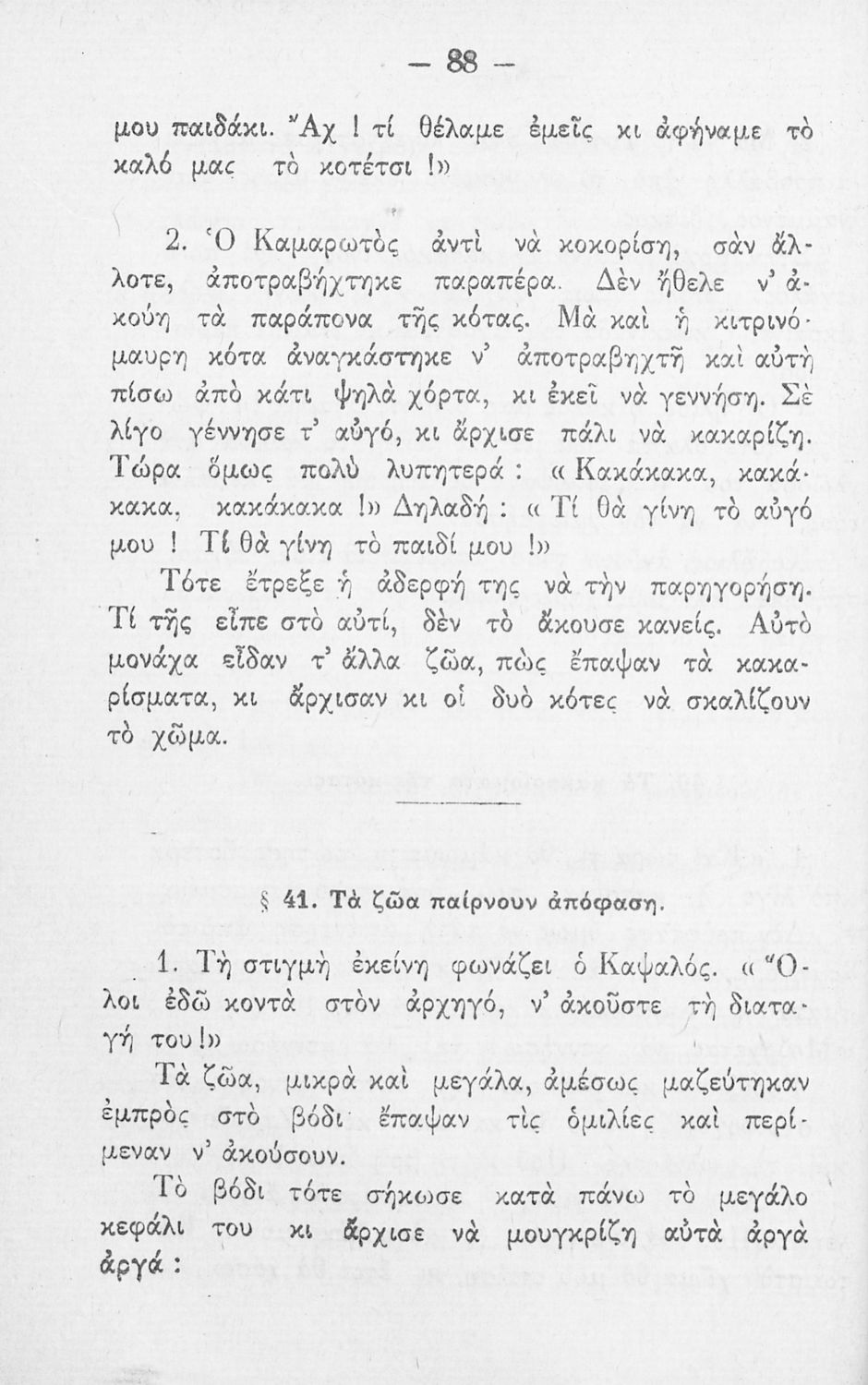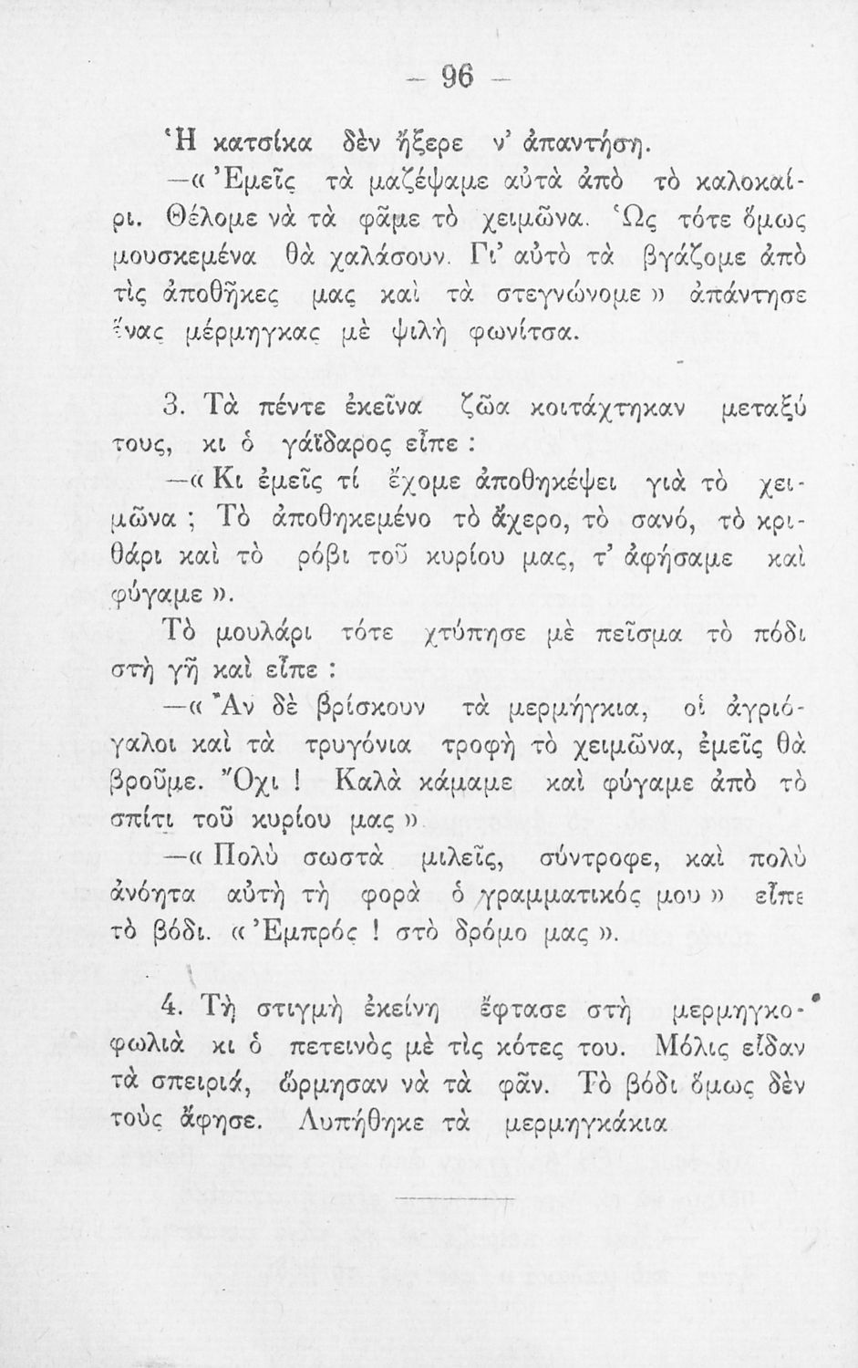 Αναγνωστικό για την Β' Τάξη του Δημοτικού. Περιλαμβάνει μικρά διηγήματα με περιεχόμενο από την οικογενειακή και οικιακή ζωή με βασικούς χαρακτήρες από το ζωικό βασίλειο ώστε μαθητές να αποκτούν ευρύτερες γνώσεις για το περιβάλλον και την καθημερινότητα. Το ύφος και η γλώσσα των κειμένων είναι απλά. Περιέχει εικόνες, οι οποίες εξυπηρετούν και διευκολύνουν στην εκμάθηση της γλώσσας.