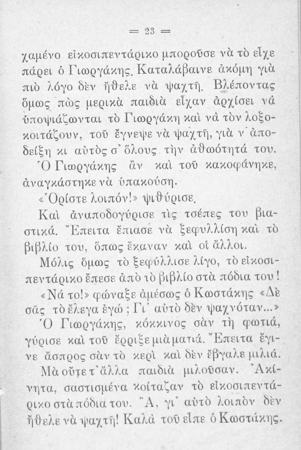 Αναγνωστικό Β' Δημοτικού που περιλαμβάνει ποιήματα και πεζά εμπνευσμένα από την καθημερινή ζωή, την ελληνική μυθολογία, την ελληνική φύση και τη θρησκευτική παράδοση.