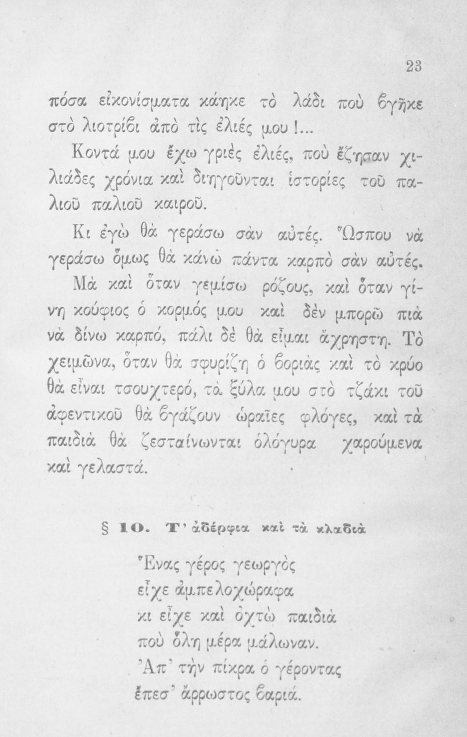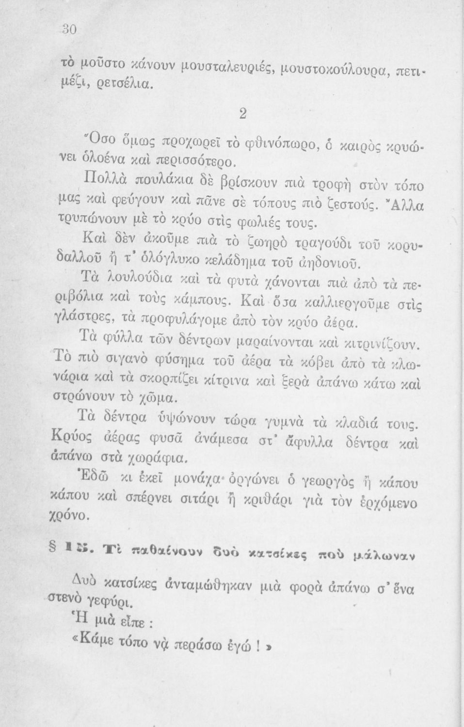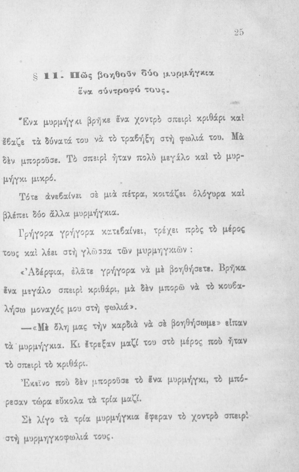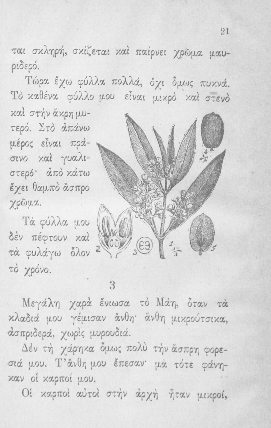 Αναγνωστικό Β' Δημοτικού που περιλαμβάνει μικρά διηγήματα και ποιήματα με περιεχόμενο από την οικογενειακή και κοινωνική ζωή, την ελληνική φύση, την ελληνική ιστορία και μυθολογία και την υγιεινή.