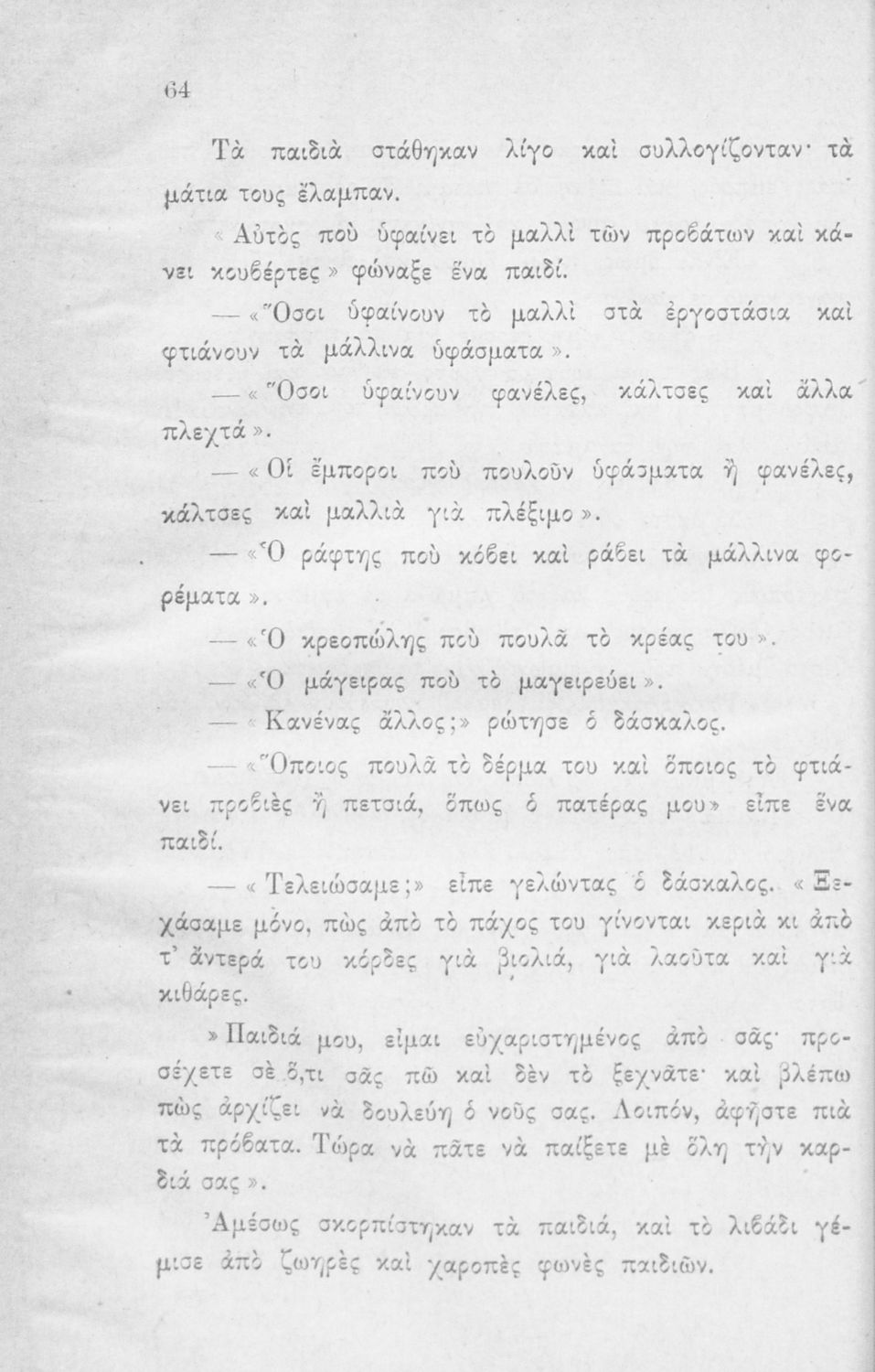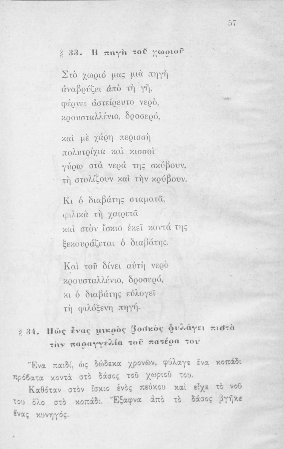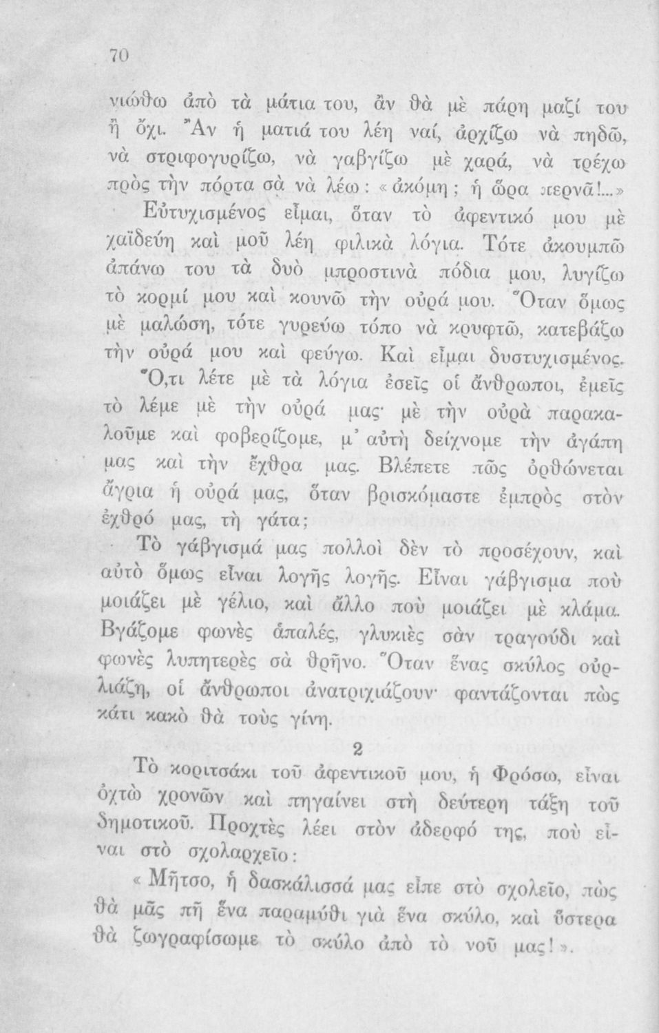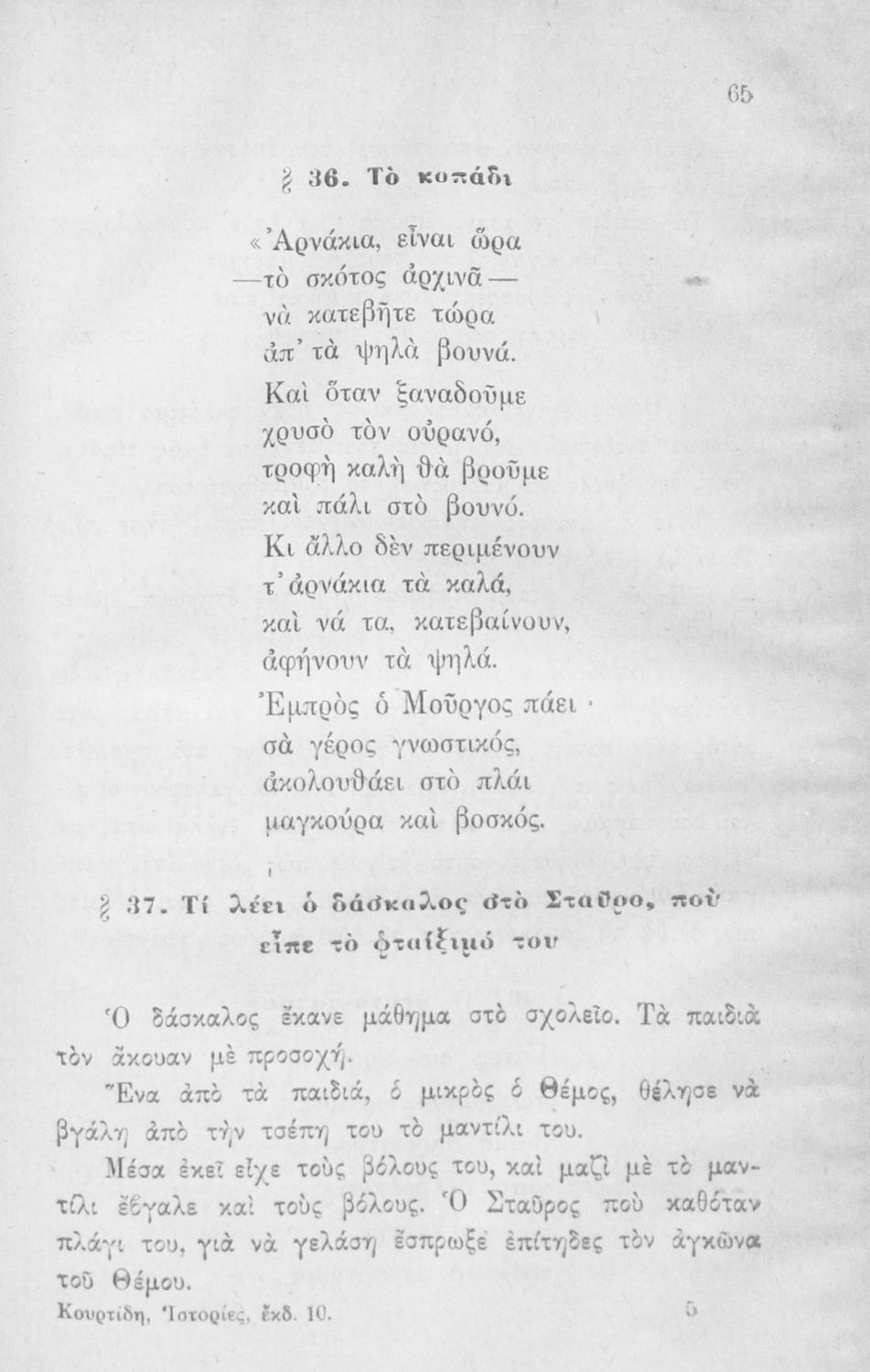 Αναγνωστικό Β' Δημοτικού που περιλαμβάνει μικρά διηγήματα και ποιήματα με περιεχόμενο από την οικογενειακή και κοινωνική ζωή, την ελληνική φύση, την ελληνική ιστορία και μυθολογία και την υγιεινή.