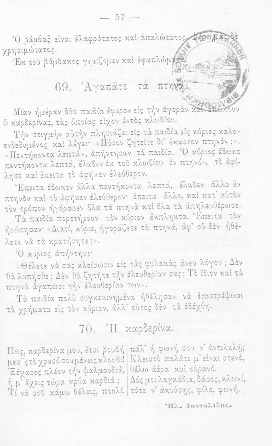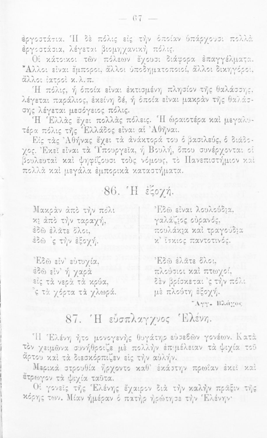 Ελληνικόν Αναγνωσματάριον. Προς χρήσιν των μαθητών της Β΄ Τάξεως των Δημοτικών Σχολείων