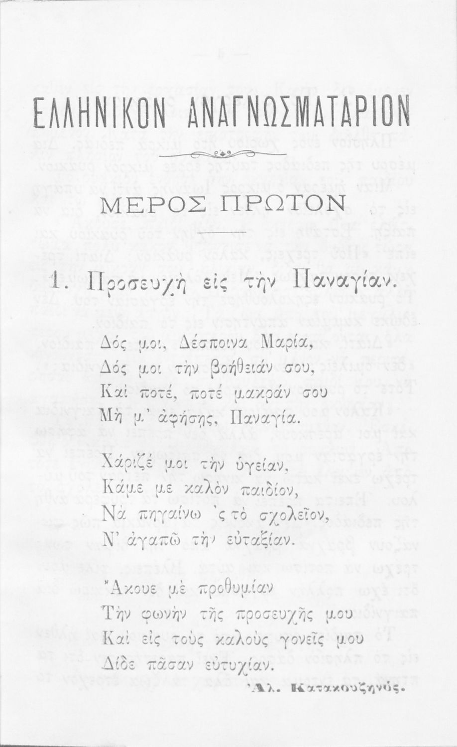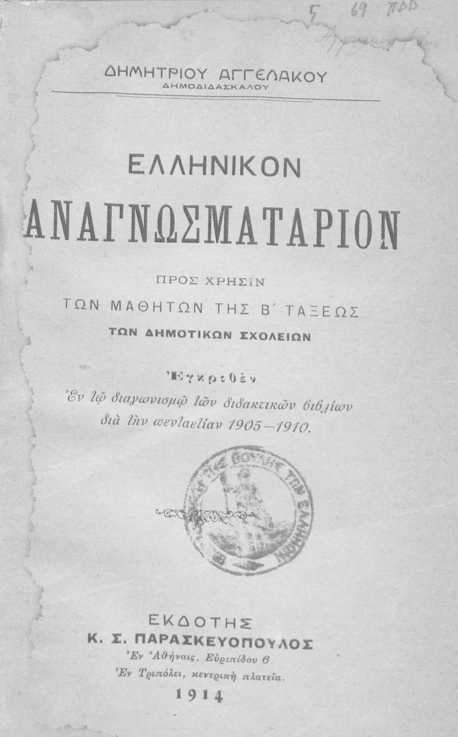 Τίτλος: Ελληνικόν Αναγνωσματάριον. Προς χρήσιν των μαθητών της Β΄ Τάξεως των Δημοτικών Σχολείων