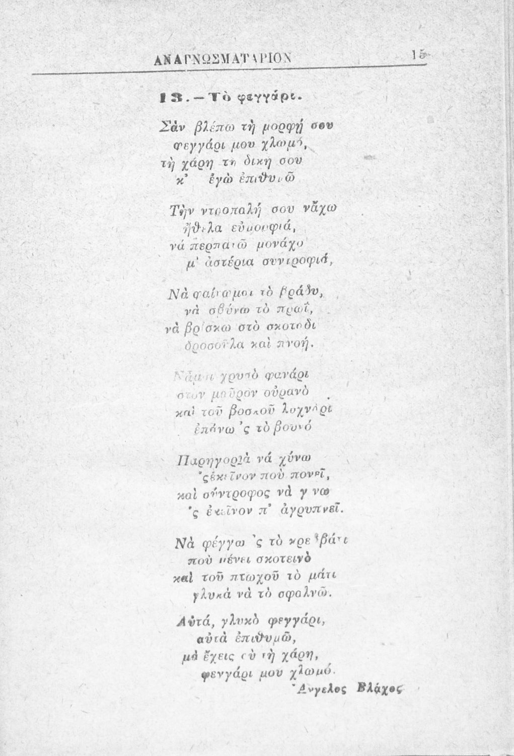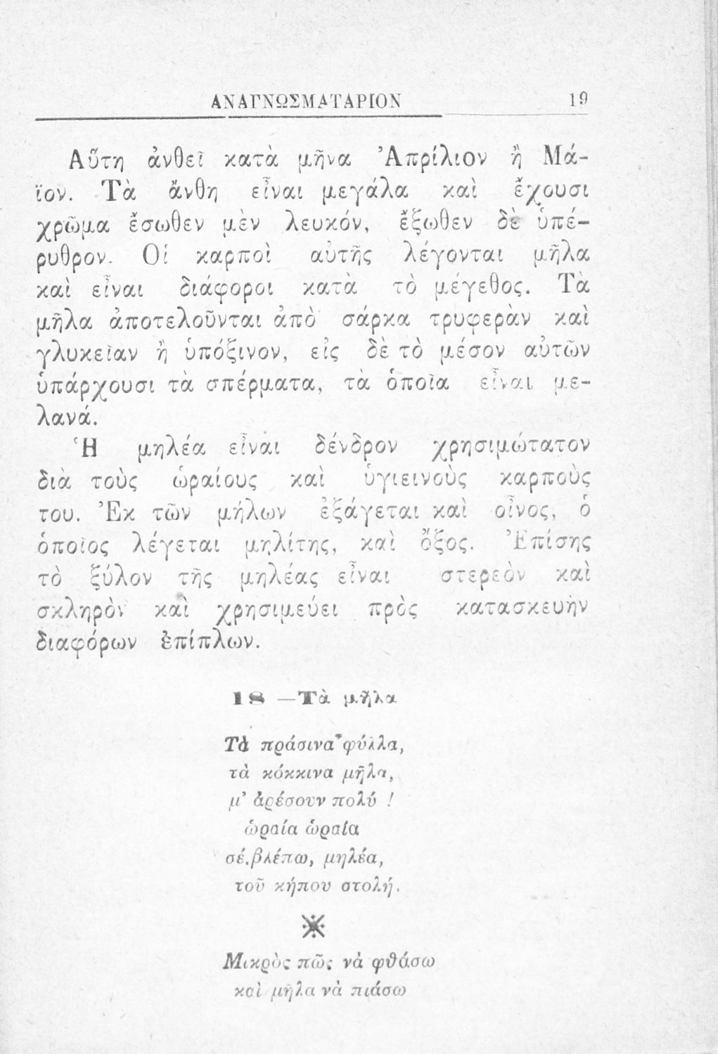 Αναγνωστικό του Δημοτικού. Περιέχει κείμενα της Γαλάτειας Καζαντζάκη. Στο τέλος του βιβλίου υπάρχουν καλλιγραφικά υποδείγματα από το Αναγνωσματάριο του Δημοσθένη Ανδρεάδη.