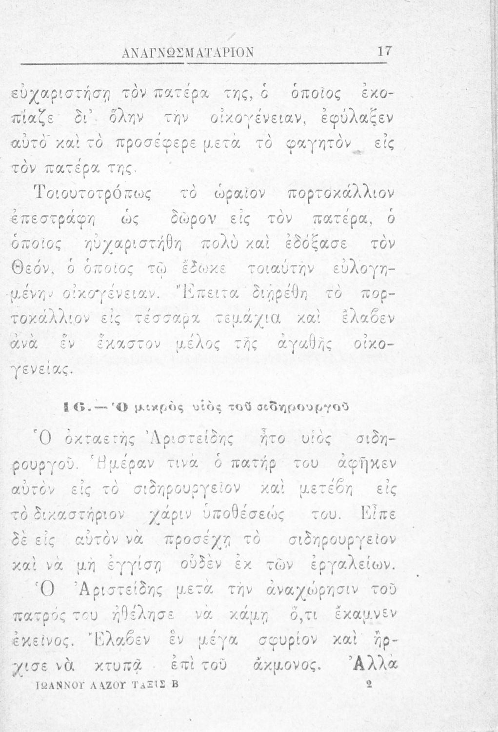 Ελληνικόν Αναγνωσματάριον μετ' εικόνων. Προς χρήσιν των μαθητών της Β' τάξεως του Δημοτικού Σχολείου