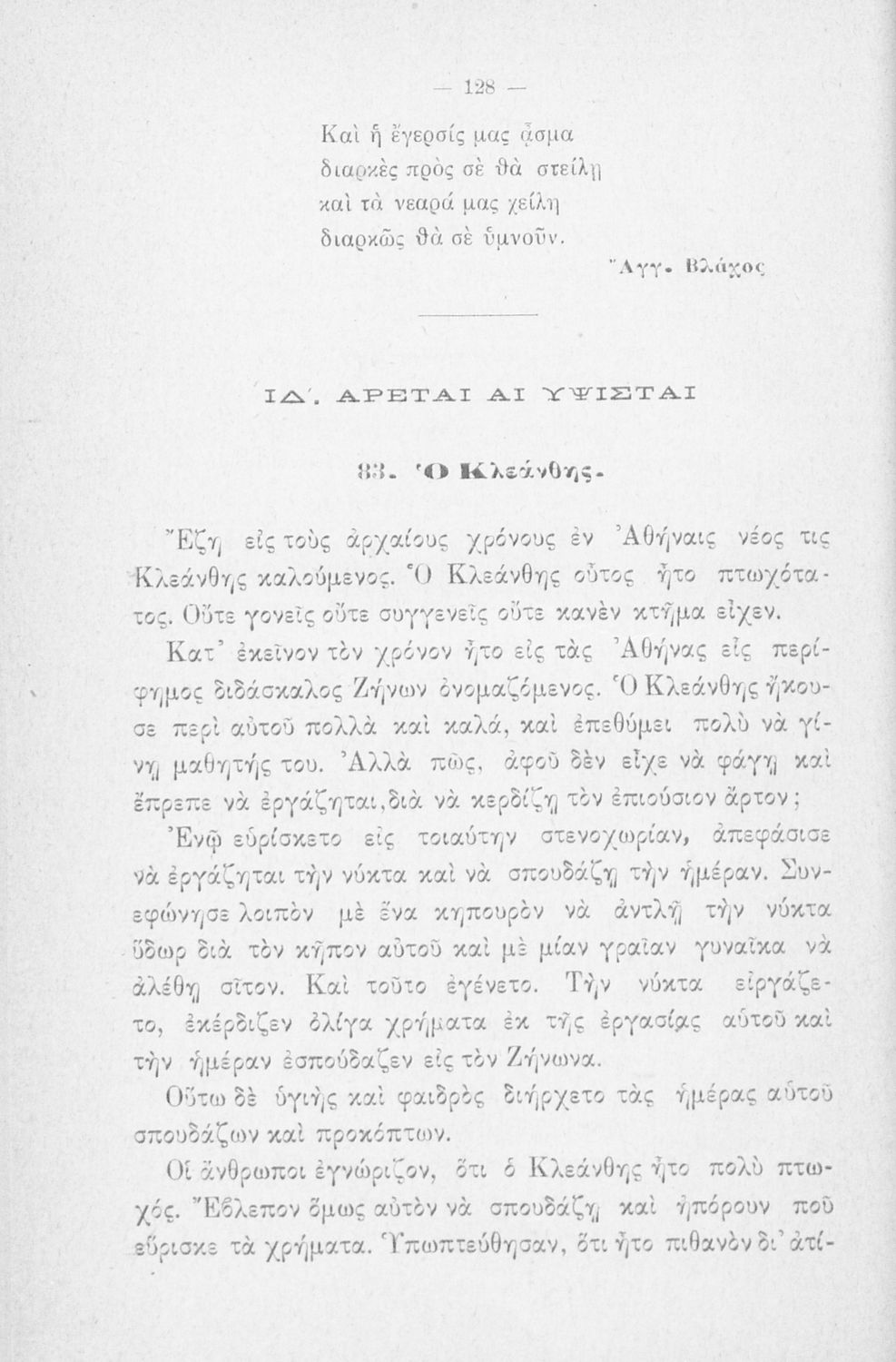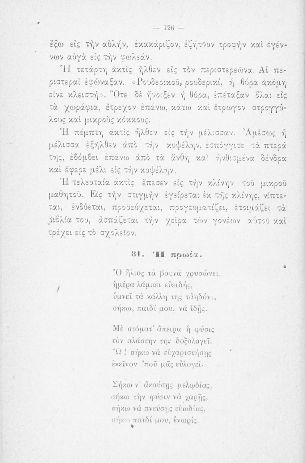 Αναγνωστικό Γ΄ Δημοτικού που περιλαμβάνει ποιήματα και πεζά με θέματα όπως η καλή και κακή συναναστροφή, η φρόνηση, η οκνηρία, η φιλανθρωπία και η πίστη στο Θεό