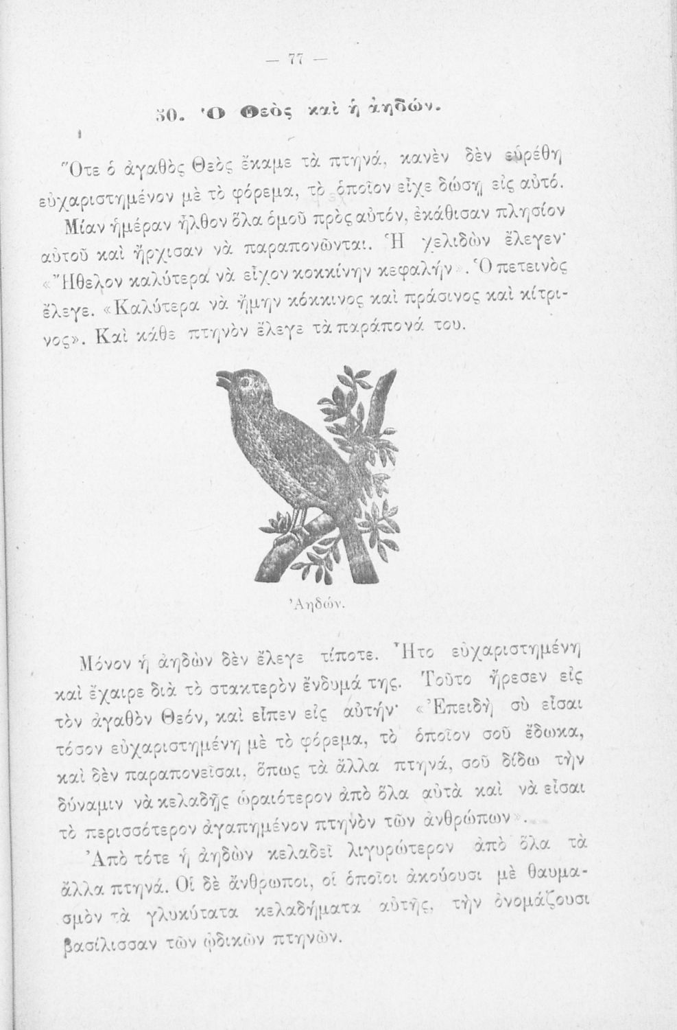 Αναγνωστικό Γ΄ Δημοτικού που περιλαμβάνει ποιήματα και πεζά με θέματα όπως η καλή και κακή συναναστροφή, η φρόνηση, η οκνηρία, η φιλανθρωπία και η πίστη στο Θεό