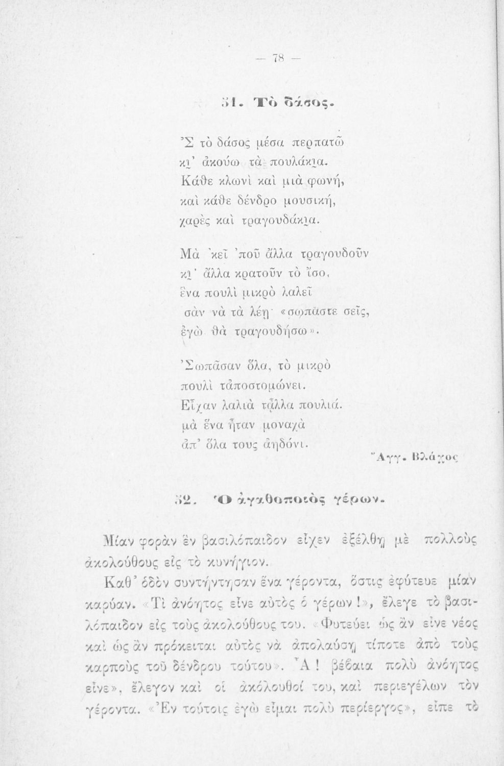 Αναγνωστικό Β' Δημοτικού που περιλαμβάνει πεζά και ποιήματα, ηθικοπλαστικού περιεχομένου, και προβάλει αξίες και αρετές όπως η τιμιότητα, η ευσπλαχνία, η γενναιότητα, η αγάπη, η φιλοπατρία, κι η ευγνωμοσύνη.