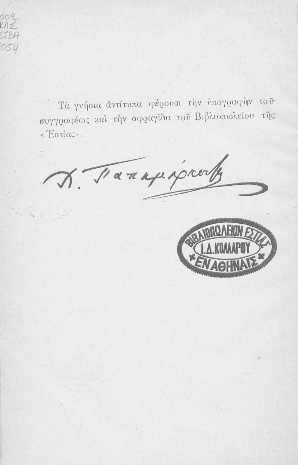 Εκδότης: Ιωάννης Δ. Κολλάρος και ΣΙΑ, Βιβλιοπωλείο της "Εστίας"