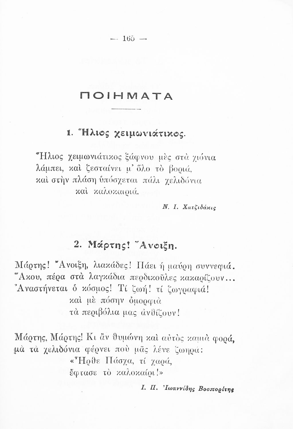 Αναγνωστικό Β' Δημοτικού που περιλαμβάνει ποιήματα και πεζά εμπνευσμένα από την καθημερινή ζωή, την ελληνική μυθολογία, την ελληνική φύση και τη θρησκευτική παράδοση.