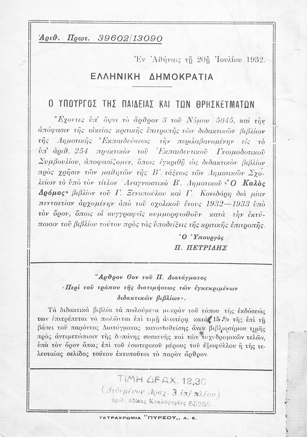 Υπουργική απόφαση / Σύμβαση: 36902/13090/28-7-1932