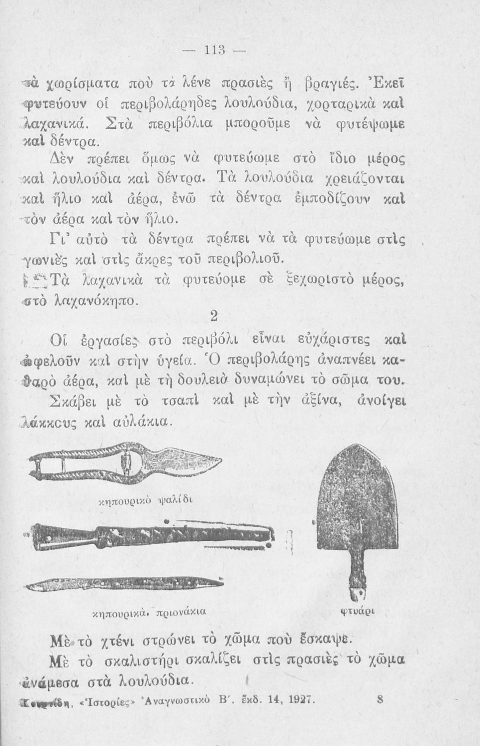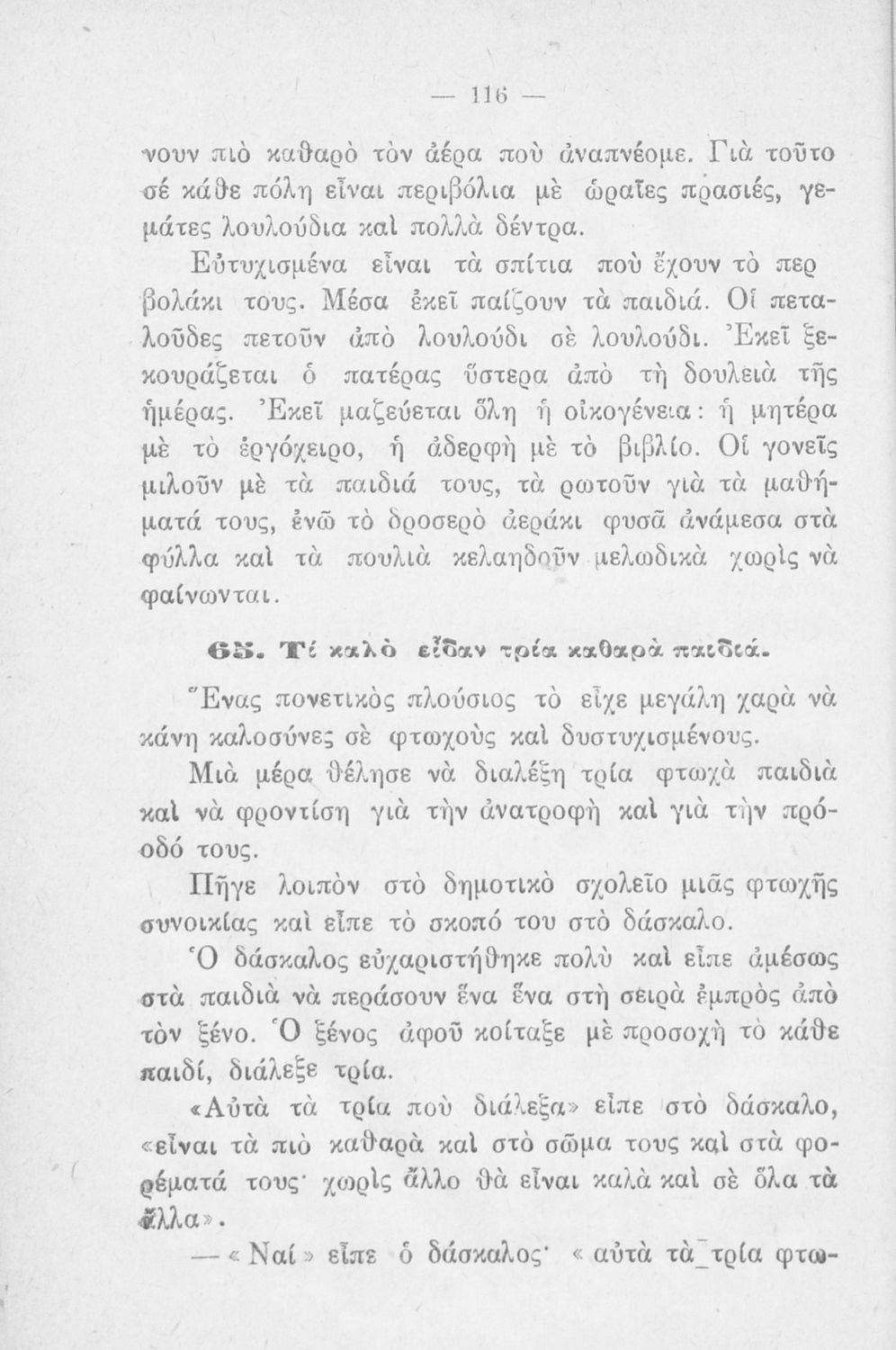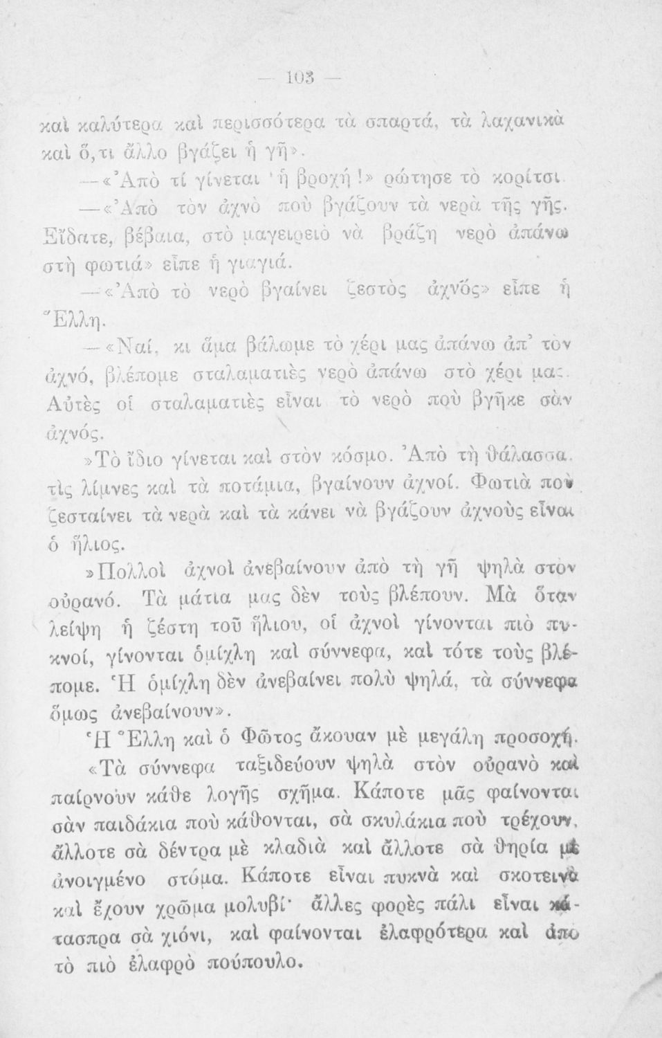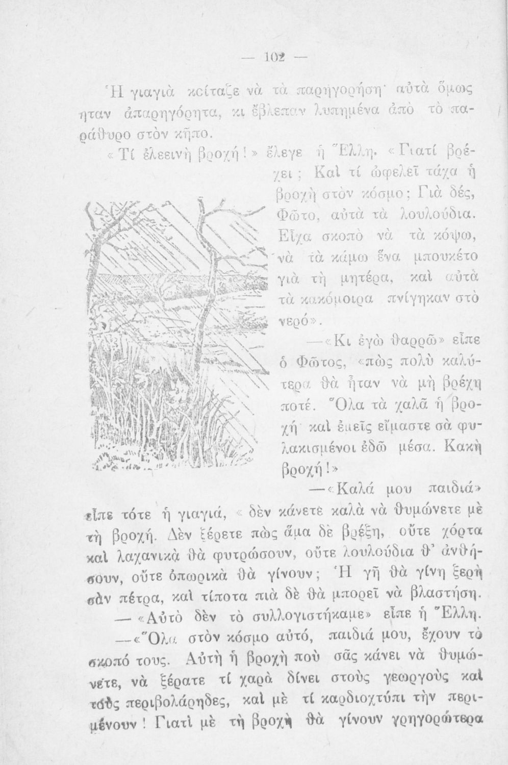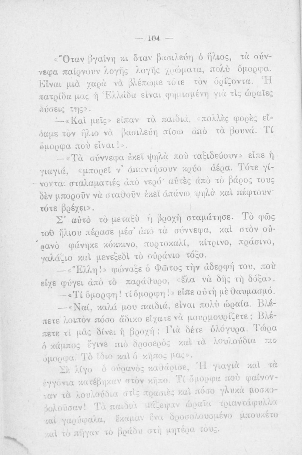 Αναγνωστικό Β' Δημοτικού που περιλαμβάνει μικρά διηγήματα και ποιήματα με περιεχόμενο από την οικογενειακή και κοινωνική ζωή, την ελληνική φύση, την ελληνική ιστορία και μυθολογία και την υγιεινή.