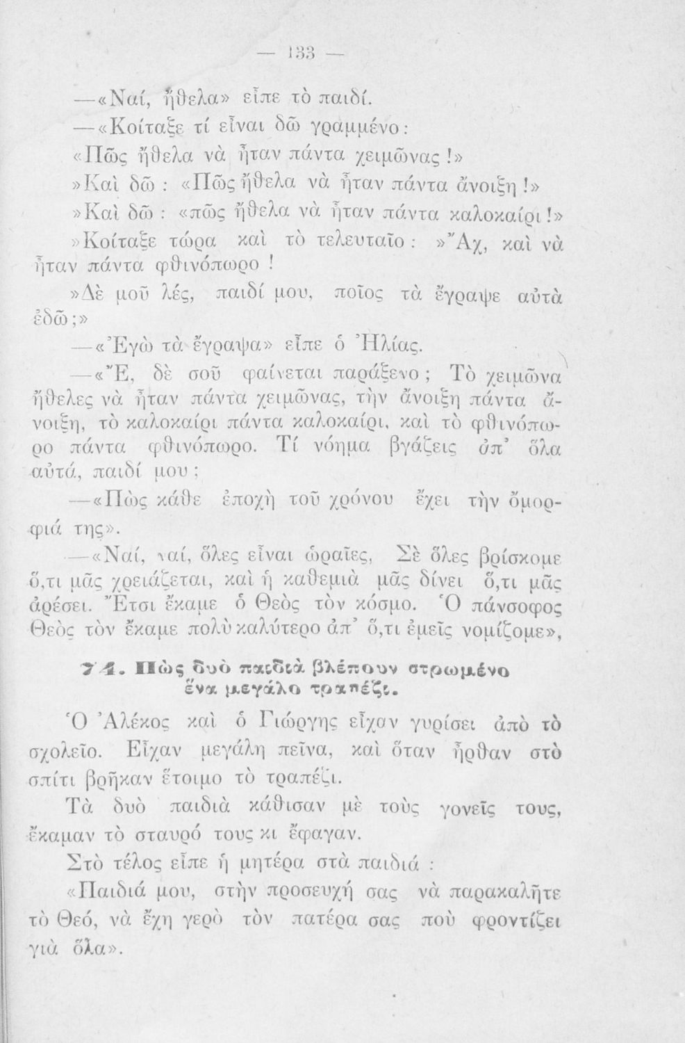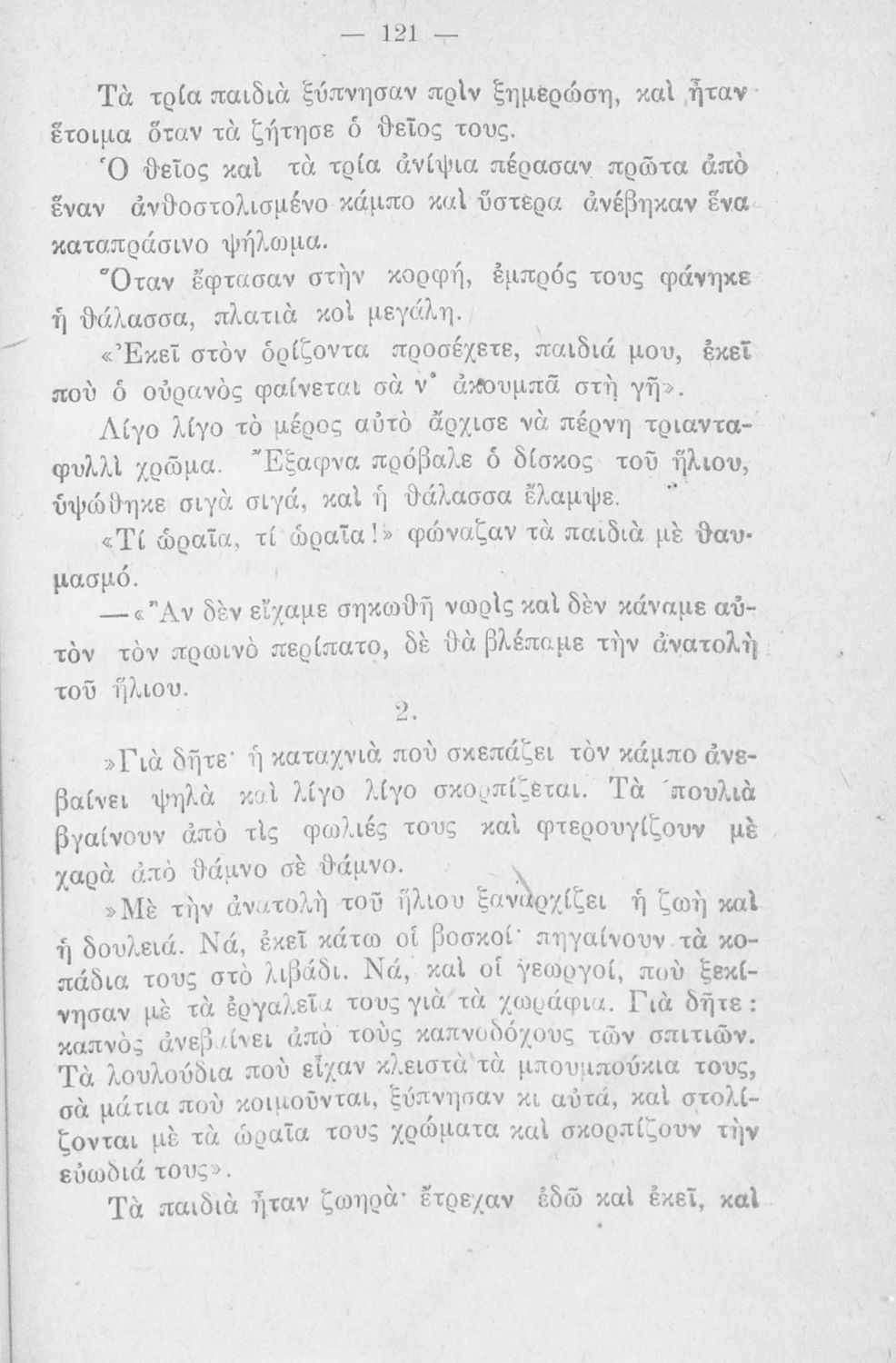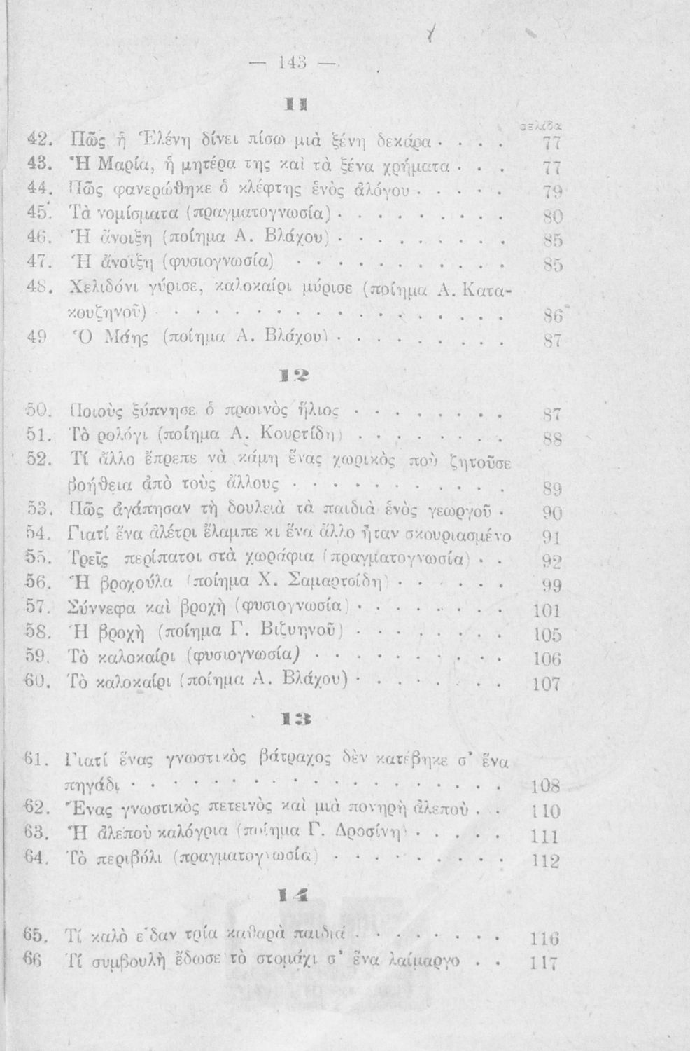 Αναγνωστικό Β' Δημοτικού που περιλαμβάνει μικρά διηγήματα και ποιήματα με περιεχόμενο από την οικογενειακή και κοινωνική ζωή, την ελληνική φύση, την ελληνική ιστορία και μυθολογία και την υγιεινή.
