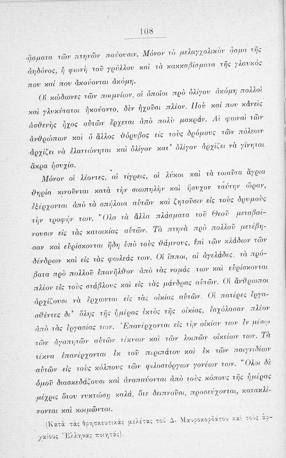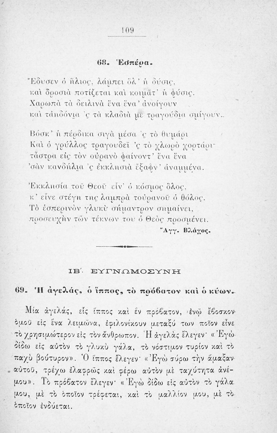 Αναγνωστικό Γ΄ Δημοτικού που περιλαμβάνει ποιήματα και πεζά με θέματα όπως η καλή και κακή συναναστροφή, η φρόνηση, η οκνηρία, η φιλανθρωπία και η πίστη στο Θεό