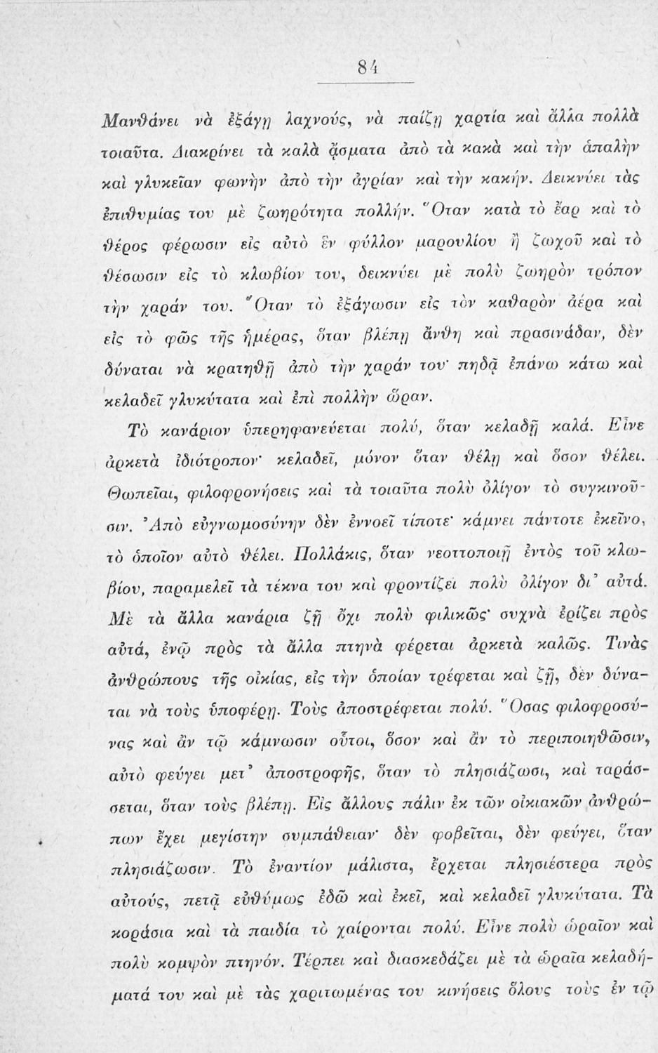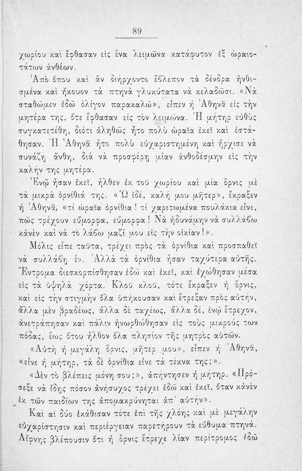 Αναγνωστικό Β' Δημοτικού που περιλαμβάνει πεζά και ποιήματα, ηθικοπλαστικού περιεχομένου, και προβάλει αξίες και αρετές όπως η τιμιότητα, η ευσπλαχνία, η γενναιότητα, η αγάπη, η φιλοπατρία, κι η ευγνωμοσύνη.