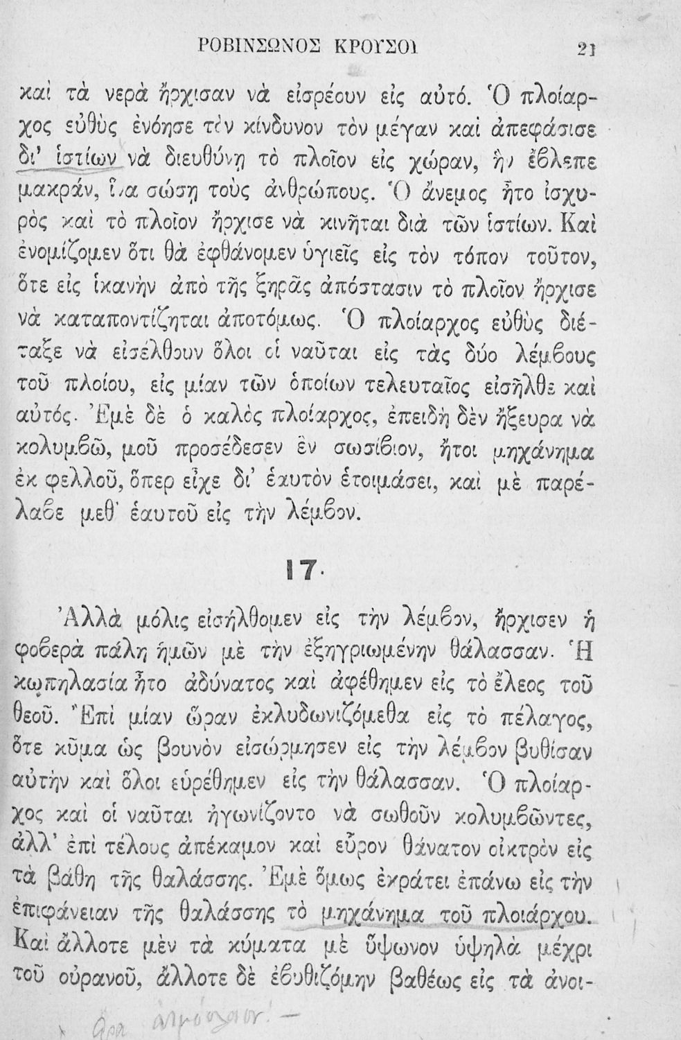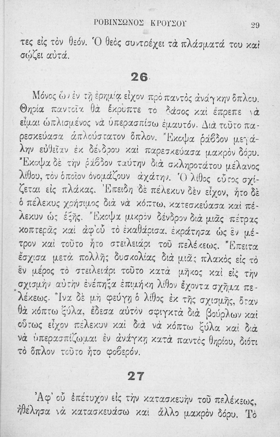 Τίτλος: Ροβινσών Κρούσος. Προς χρήσιν των Δημοτικών Σχολείων Αμφότερων των Φύλων