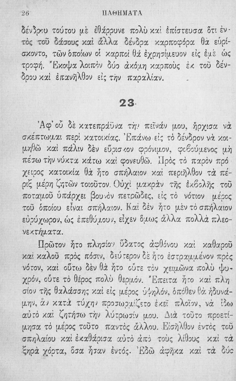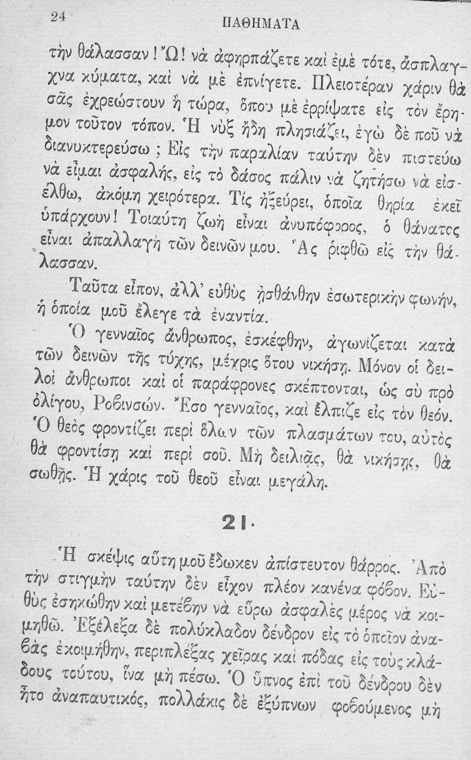 Σχολικό εγχειρίδιο για την Β Τάξη του Δημοτικού για το μάθημα της Γλώσσας. Περιλαμβάνει την αφηγηματική ιστορία του Ροβινσώνα Κρούσου, η ιστορία διαθέτει ηθικά διδάγματα για τους μικρούς μαθητές. Στο τέλος του βιβλίου υπάρχει παράρτημα με ποιήματα με περιεχόμενο εθνικό.