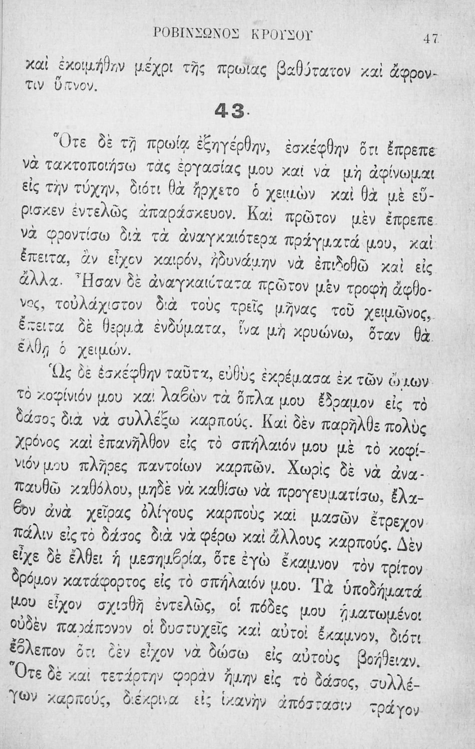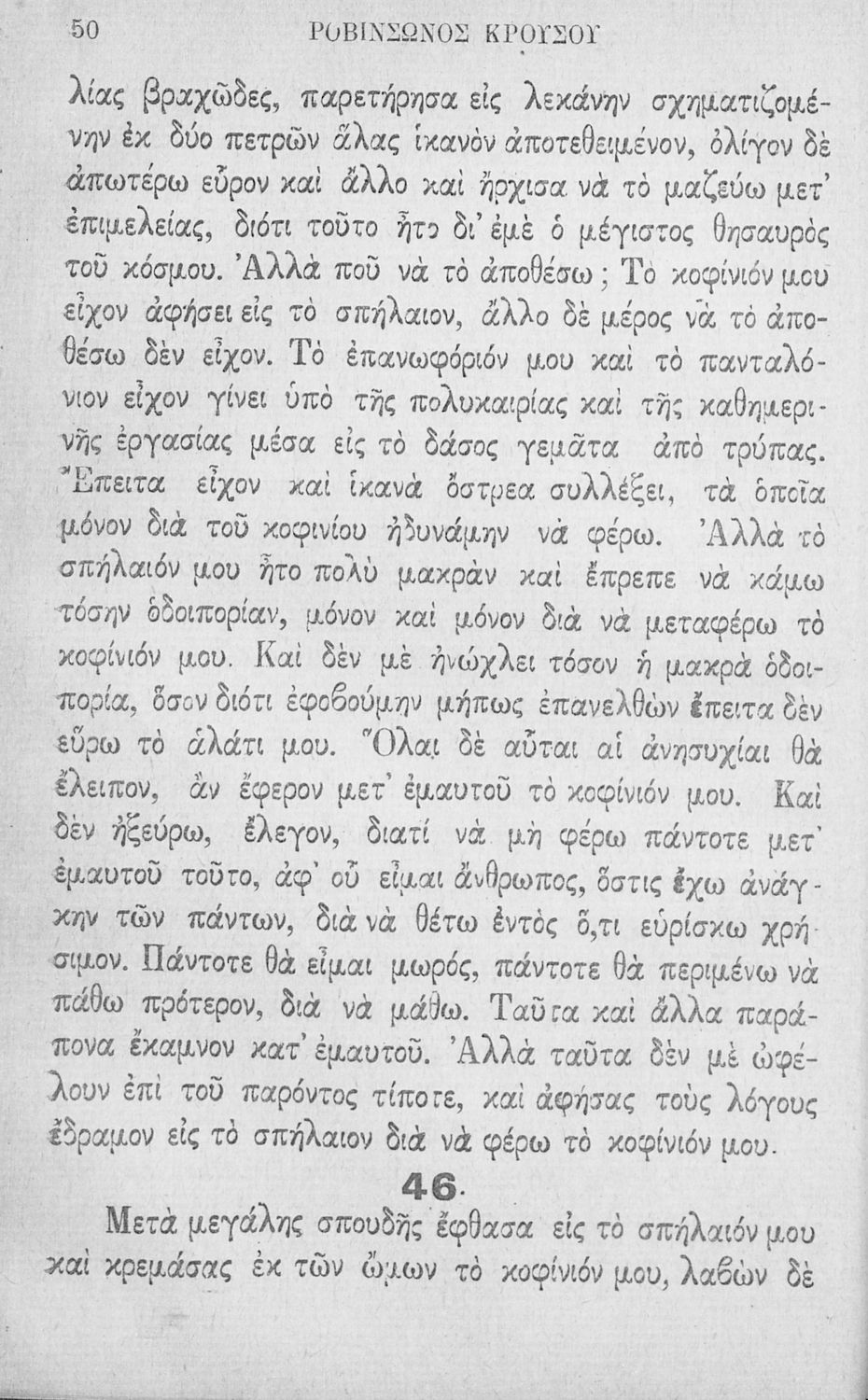 Τίτλος: Ροβινσών Κρούσος. Προς χρήσιν των Δημοτικών Σχολείων Αμφότερων των Φύλων
