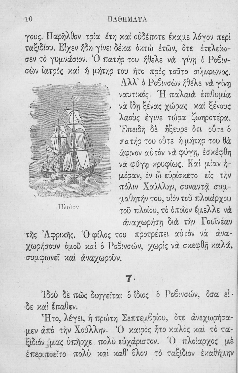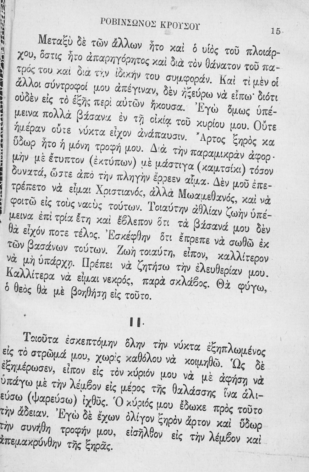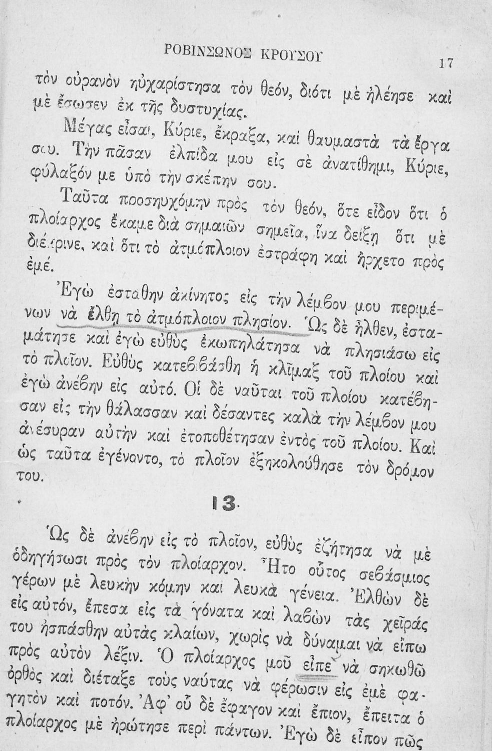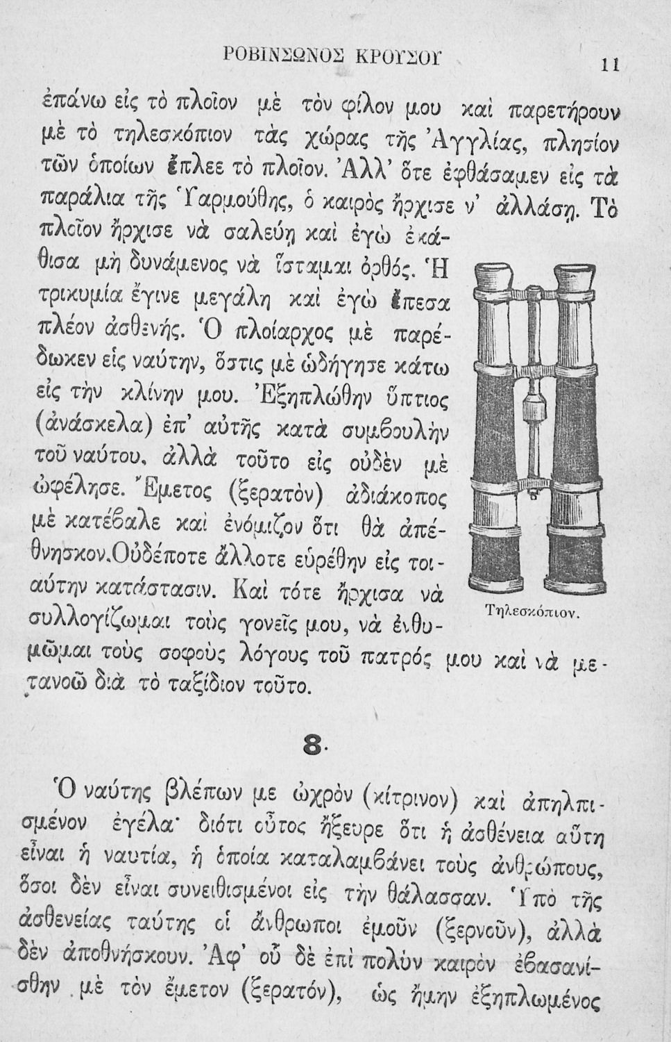 Σχολικό εγχειρίδιο για την Β Τάξη του Δημοτικού για το μάθημα της Γλώσσας. Περιλαμβάνει την αφηγηματική ιστορία του Ροβινσώνα Κρούσου, η ιστορία διαθέτει ηθικά διδάγματα για τους μικρούς μαθητές. Στο τέλος του βιβλίου υπάρχει παράρτημα με ποιήματα με περιεχόμενο εθνικό.