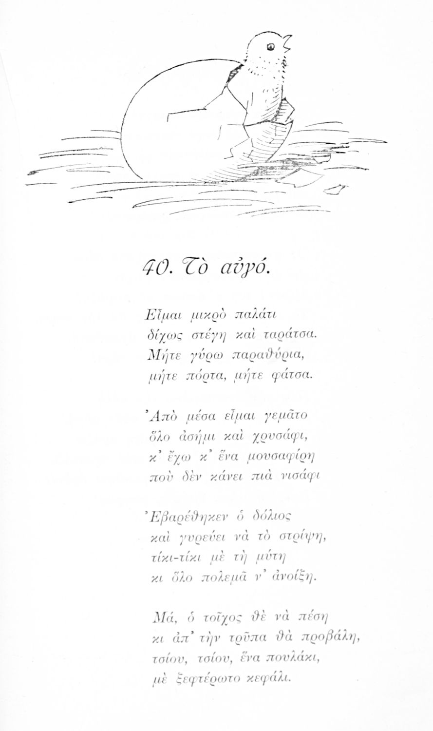 Αναγνωστικό Β' Δημοτικού που περιλαμβάνει ποιήματα και πεζά εμπνευσμένα από την καθημερινή ζωή, την ελληνική μυθολογία, την ελληνική φύση και τη θρησκευτική παράδοση.