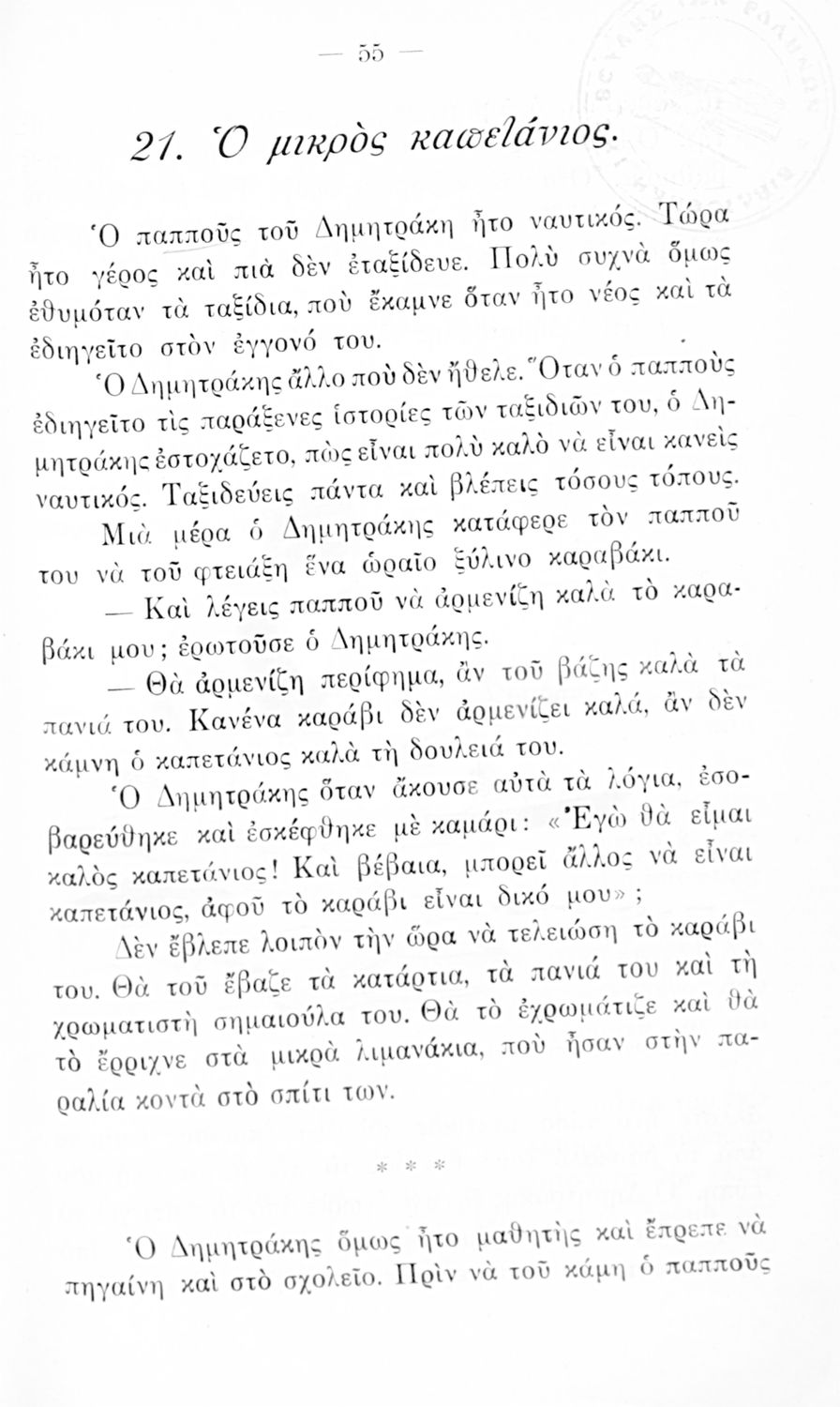 Αναγνωστικό Β' Δημοτικού που περιλαμβάνει ποιήματα και πεζά εμπνευσμένα από την καθημερινή ζωή, την ελληνική μυθολογία, την ελληνική φύση και τη θρησκευτική παράδοση.