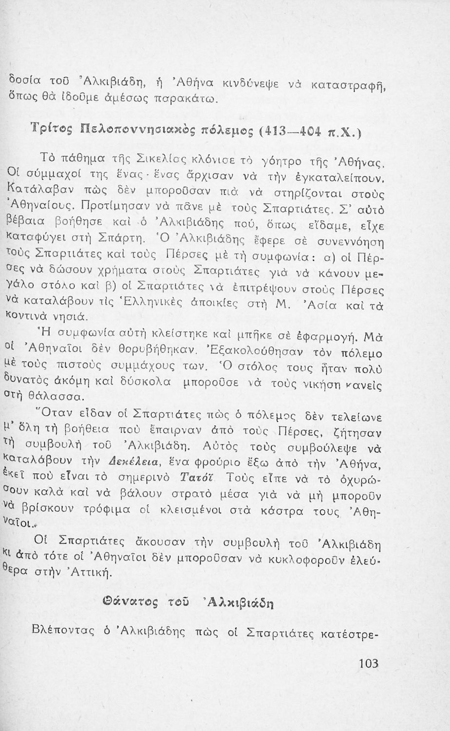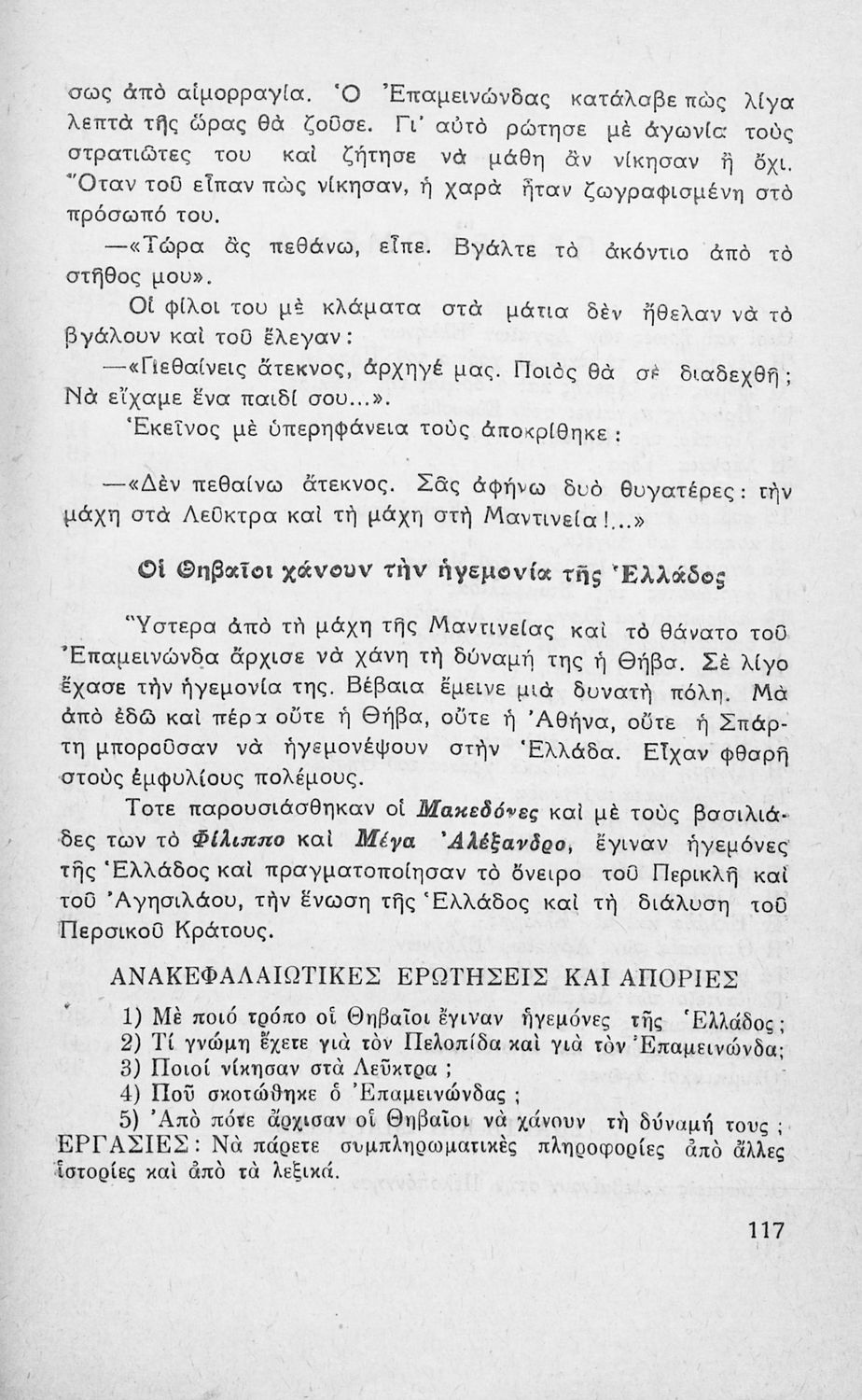 Μαθητικό βοήθημα Ιστορίας. Γ΄ και Δ΄ Δημοτικού Παρθεναγωγείου που καλύπτει το διάστημα από τους προϊστορικούς χρόνους ως τη μάχη της Μαντίνειας