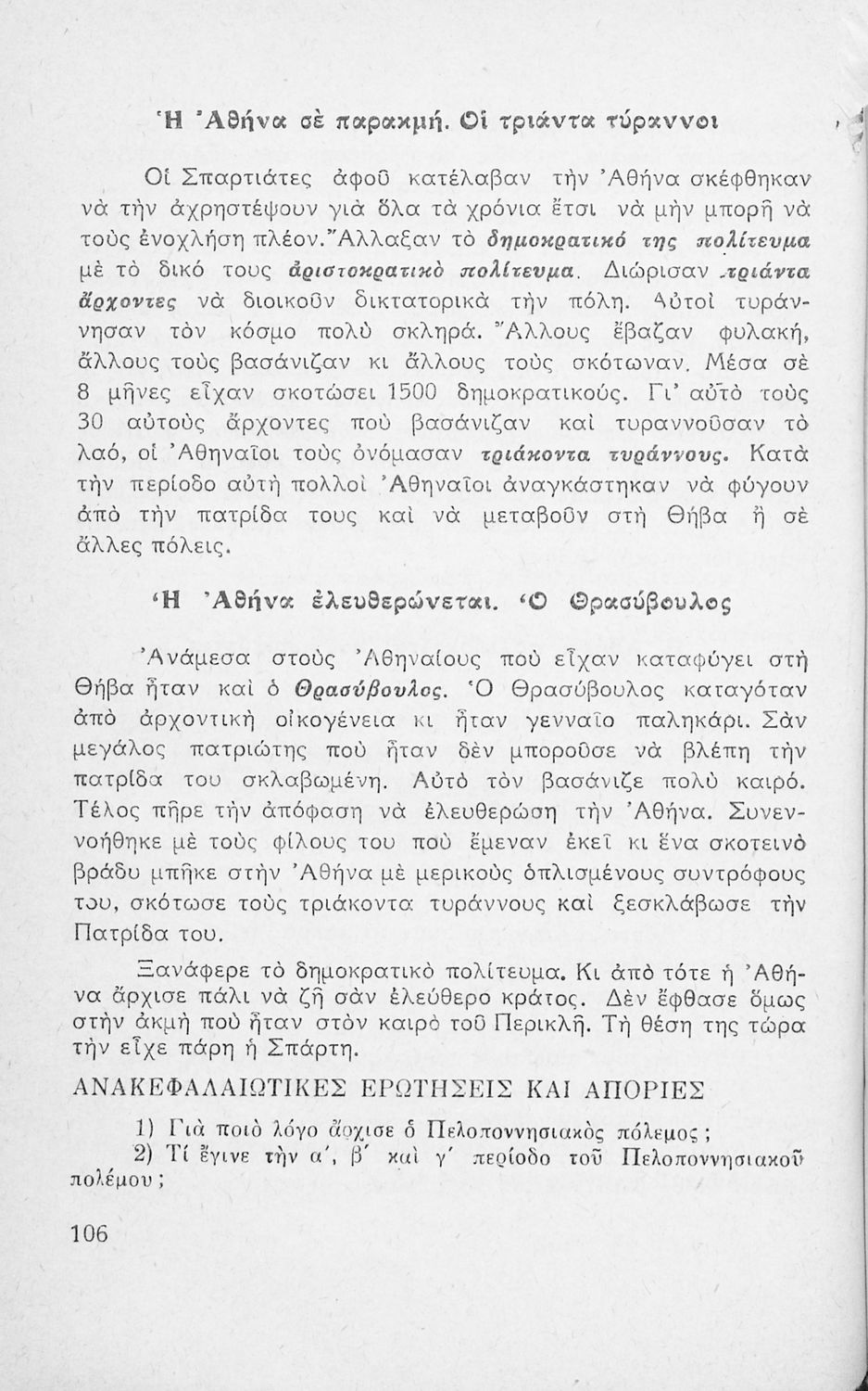 Σχολικό εγχειρίδιο Αρχαίων Ελληνικών για τις Β΄ και Γ΄ Γυμνασίου που περιέχει κείμενα βασισμένα στην αρχαία ελληνική ιστορία και μυθολογία και γραμματικές, συντακτικές και ετυμολογικές παρατηρήσεις.
