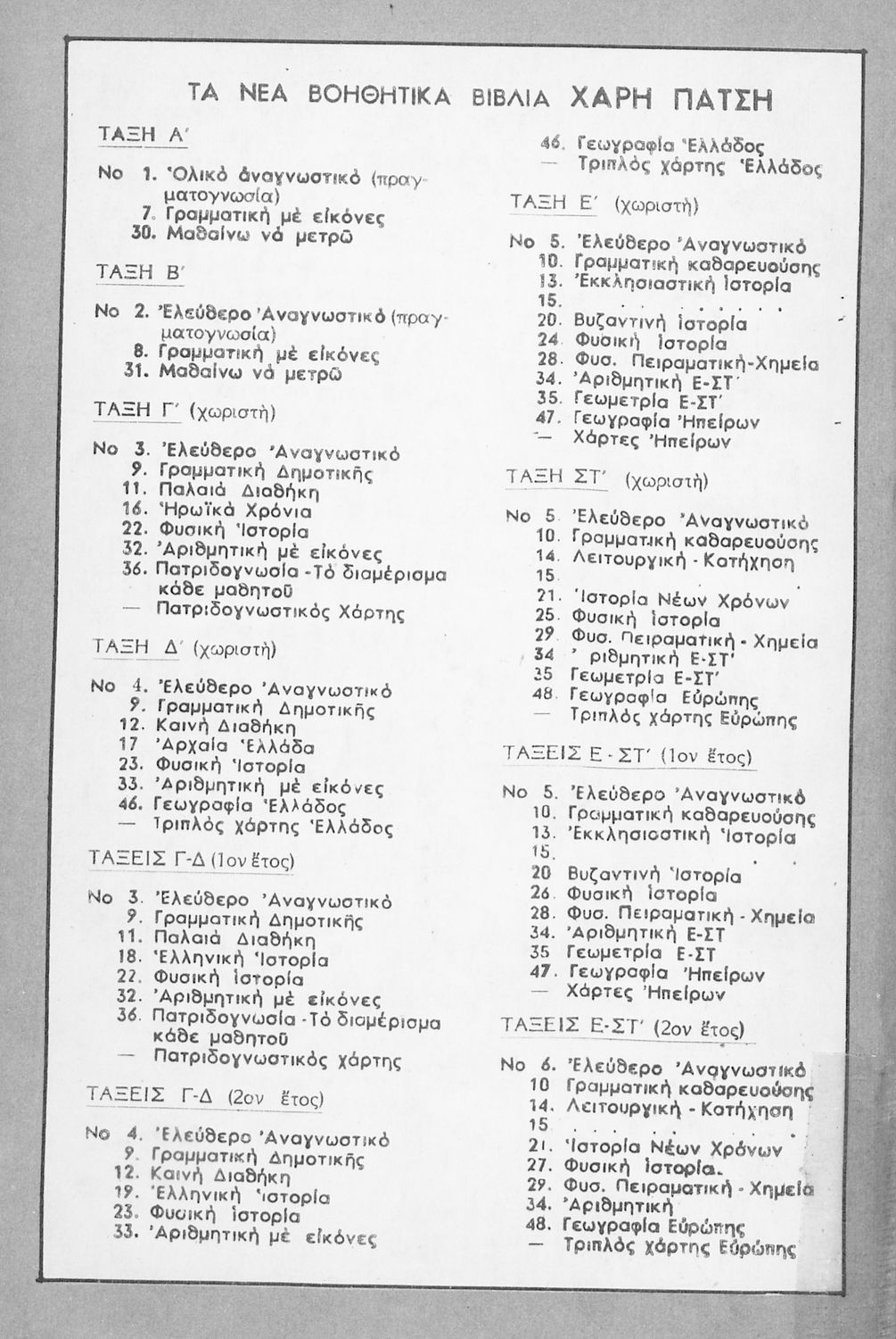 Τάξη:  Γ' Δημοτικού / Δ' Δημοτικού / Παρθεναγωγείο