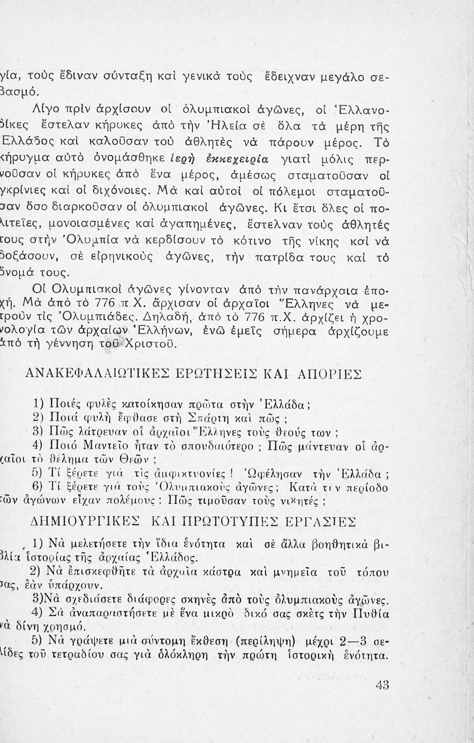 Παρουσίαση περιεχομένου: Μαθητικό βοήθημα Ιστορίας Γ΄ και Δ΄ Δημοτικού που καλύπτει την περίοδο από την κάθοδο των Δωριέων ως την ηγεμονία των Θηβών. Περιέχει και στοιχεία μυθολογίας.