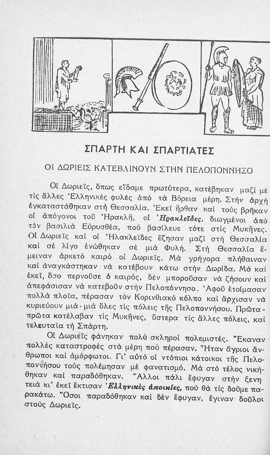 Μαθητικό βοήθημα Ιστορίας Γ΄ και Δ΄ Δημοτικού που καλύπτει την περίοδο από την κάθοδο των Δωριέων ως την ηγεμονία των Θηβών. Περιέχει και στοιχεία μυθολογίας.