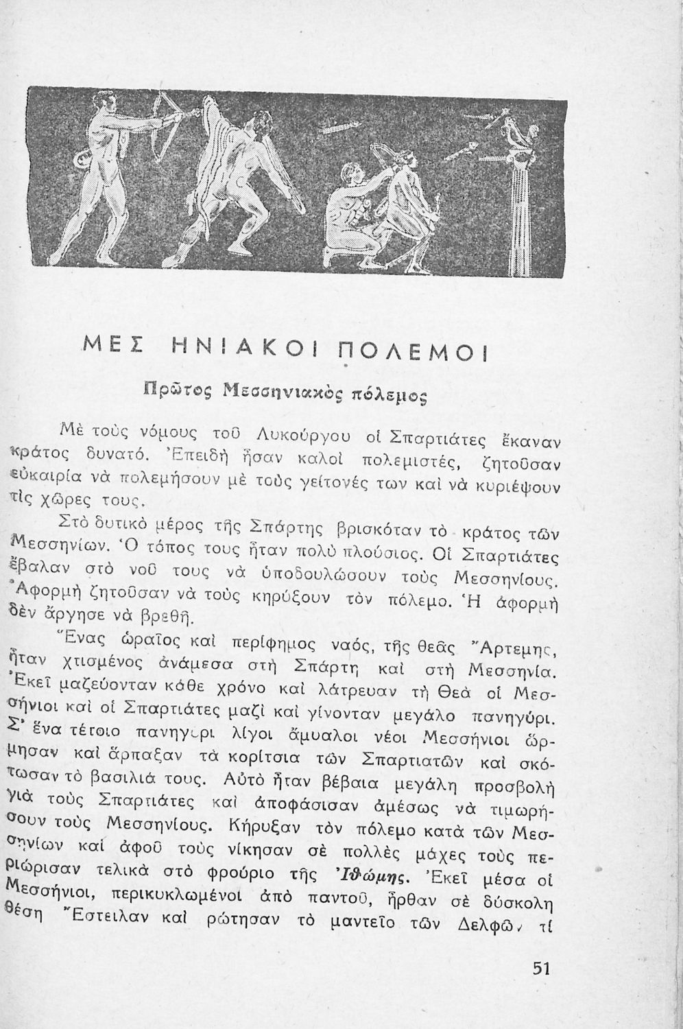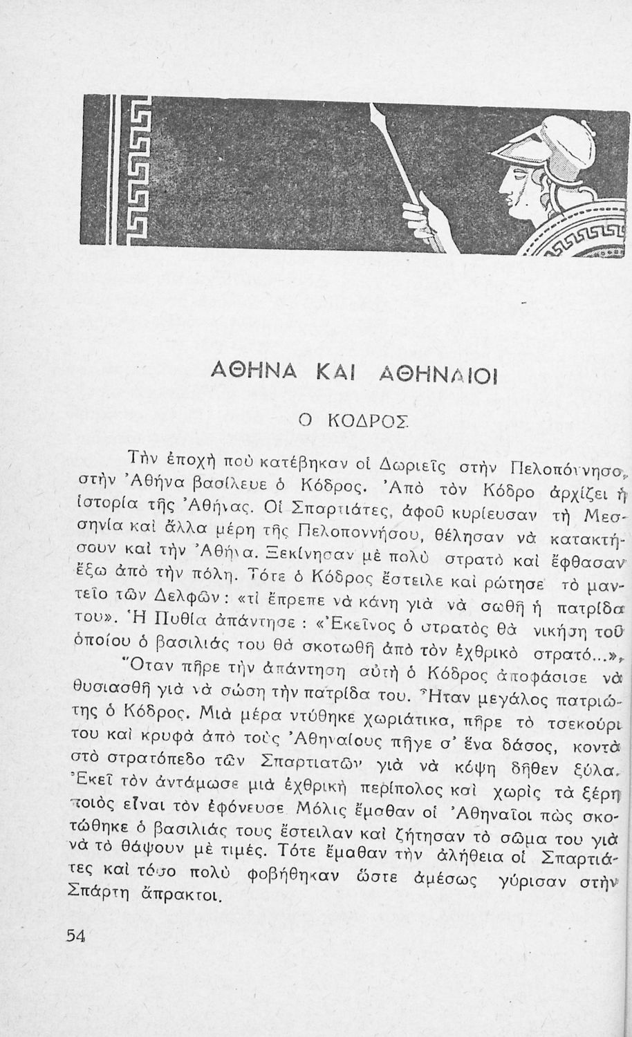 Σχολικό εγχειρίδιο Αρχαίων Ελληνικών για τις Β΄ και Γ΄ Γυμνασίου που περιέχει κείμενα βασισμένα στην αρχαία ελληνική ιστορία και μυθολογία και γραμματικές, συντακτικές και ετυμολογικές παρατηρήσεις.